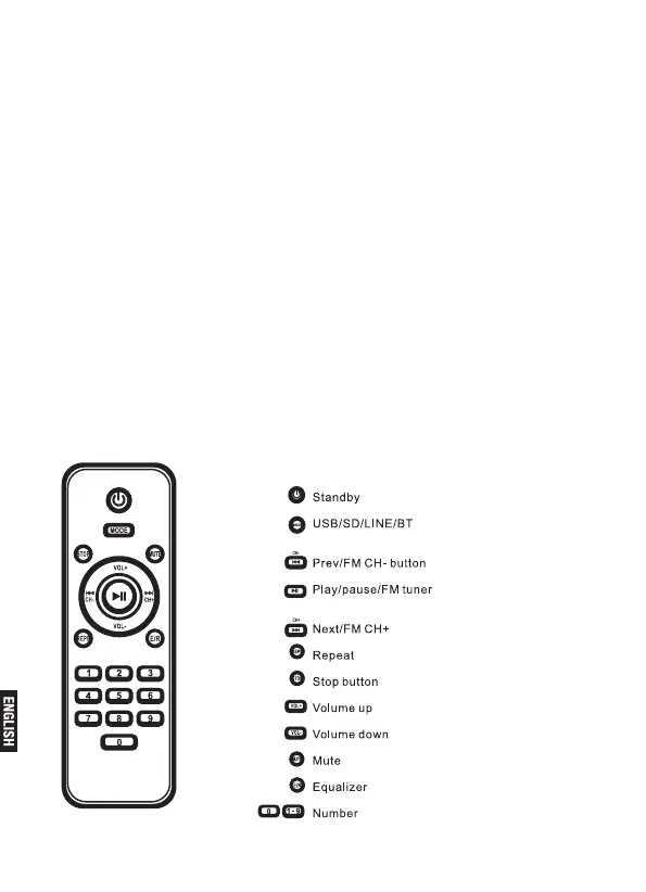 1. MODE: Choose the desired input USB/SD/Line/BT