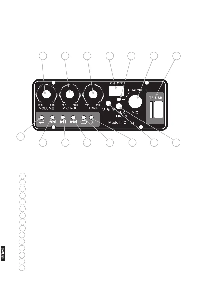 15 Mode - change function mode - Line in / Wireless / TF / USB