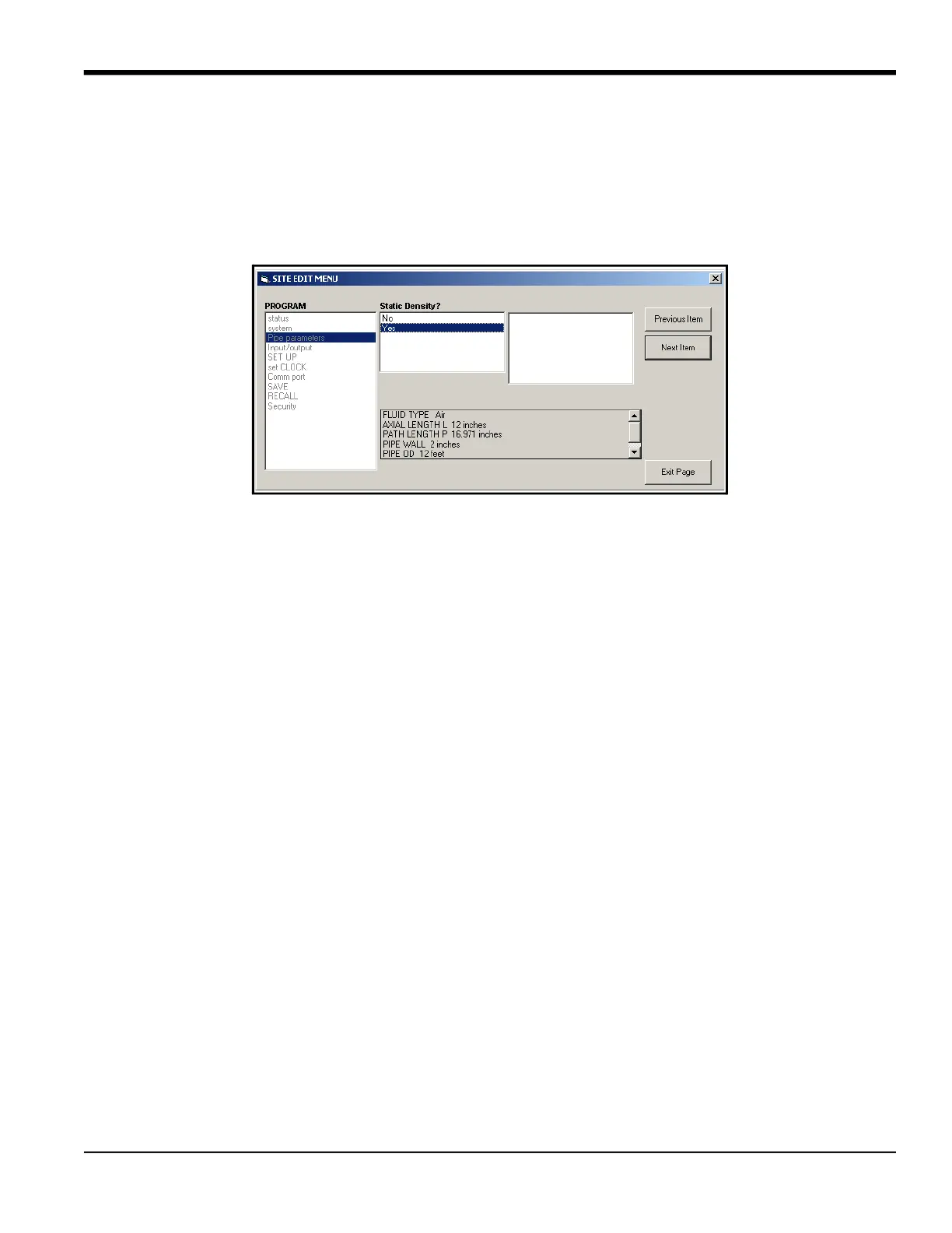 7. When you have completed entering parameters in a given option, click [Exit Page] to close the option. You can