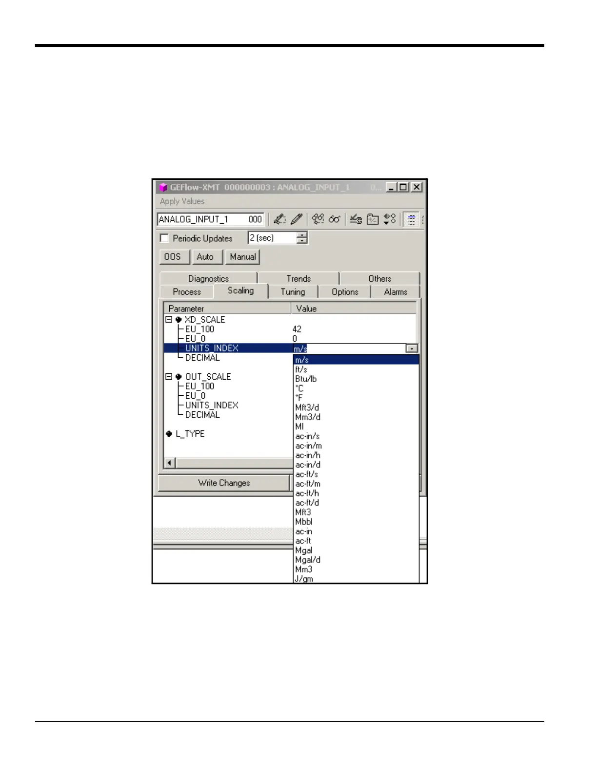2. Select the Scaling tab and set the unit for the measurement based on the flowmeter settings.