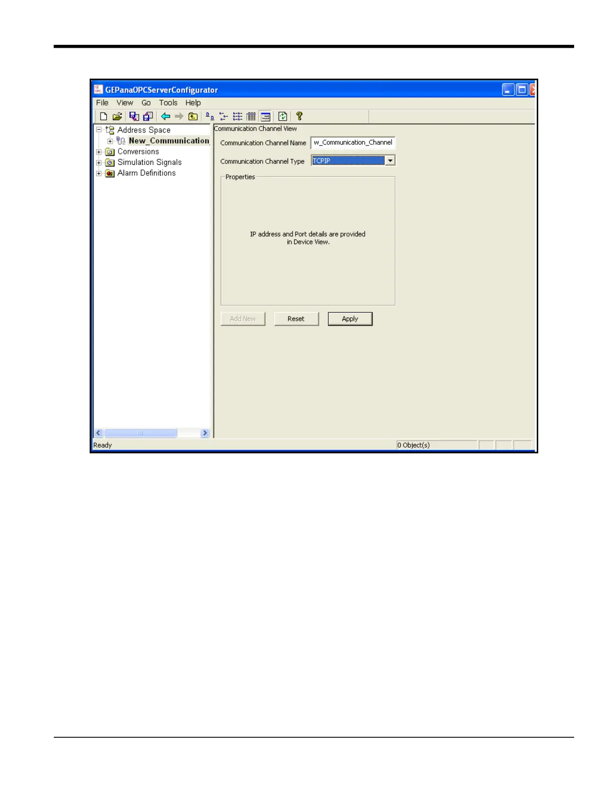 Click Apply once you have specified all the properties of a communication channel. It will then be added to the tree in