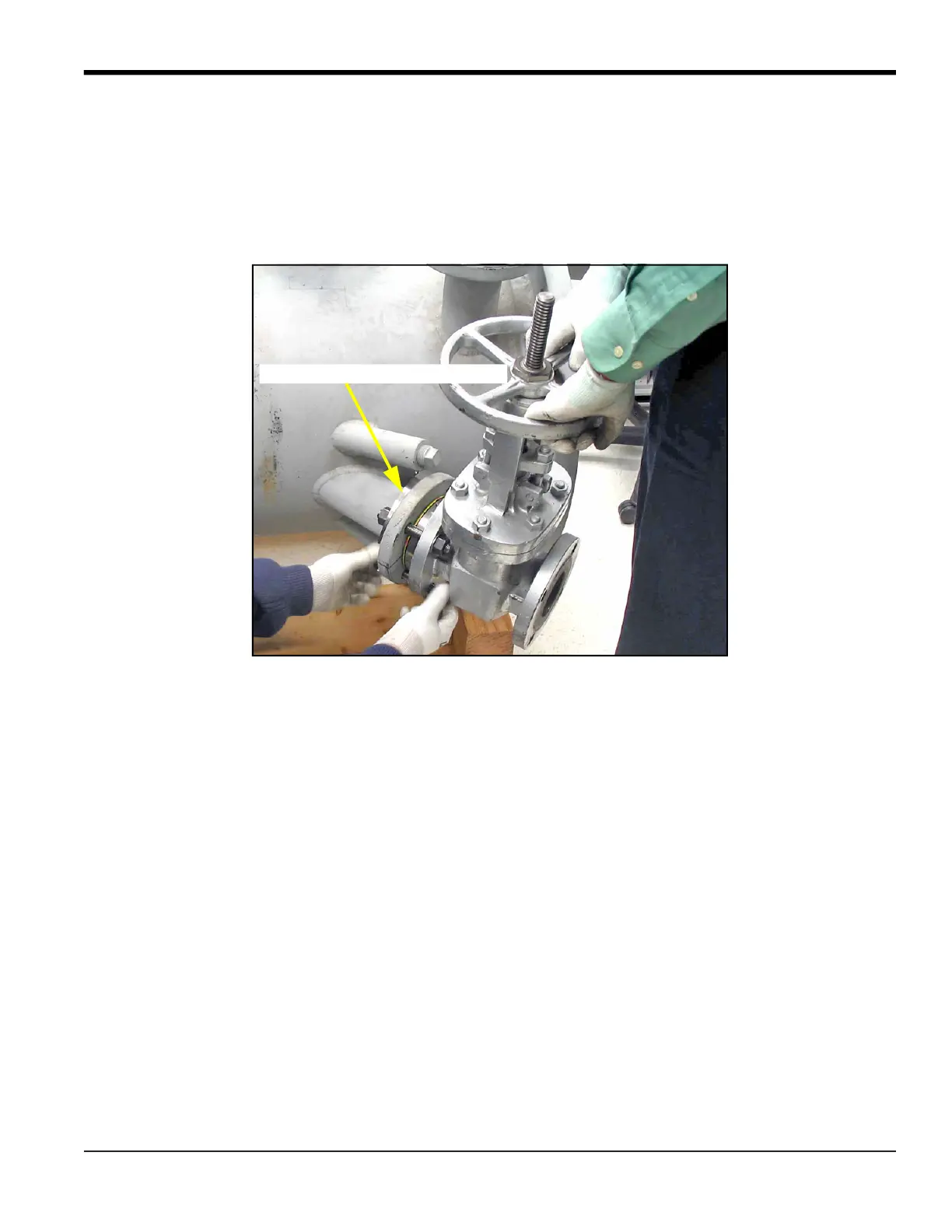 mounting holes with the bolts in the nozzle flange, push the isolation valve against the gasket/wedge/gasket