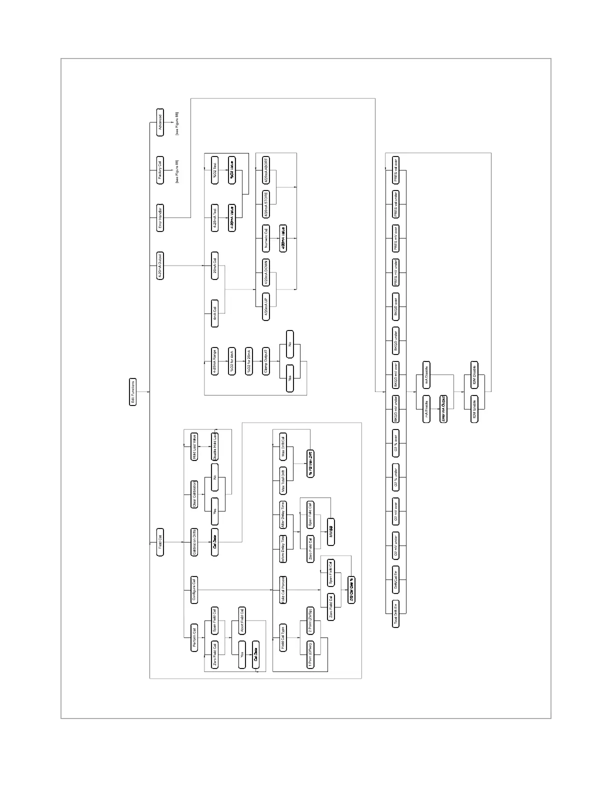 Figure 75: Field Cal, 4-20mA Output and error handler menu map