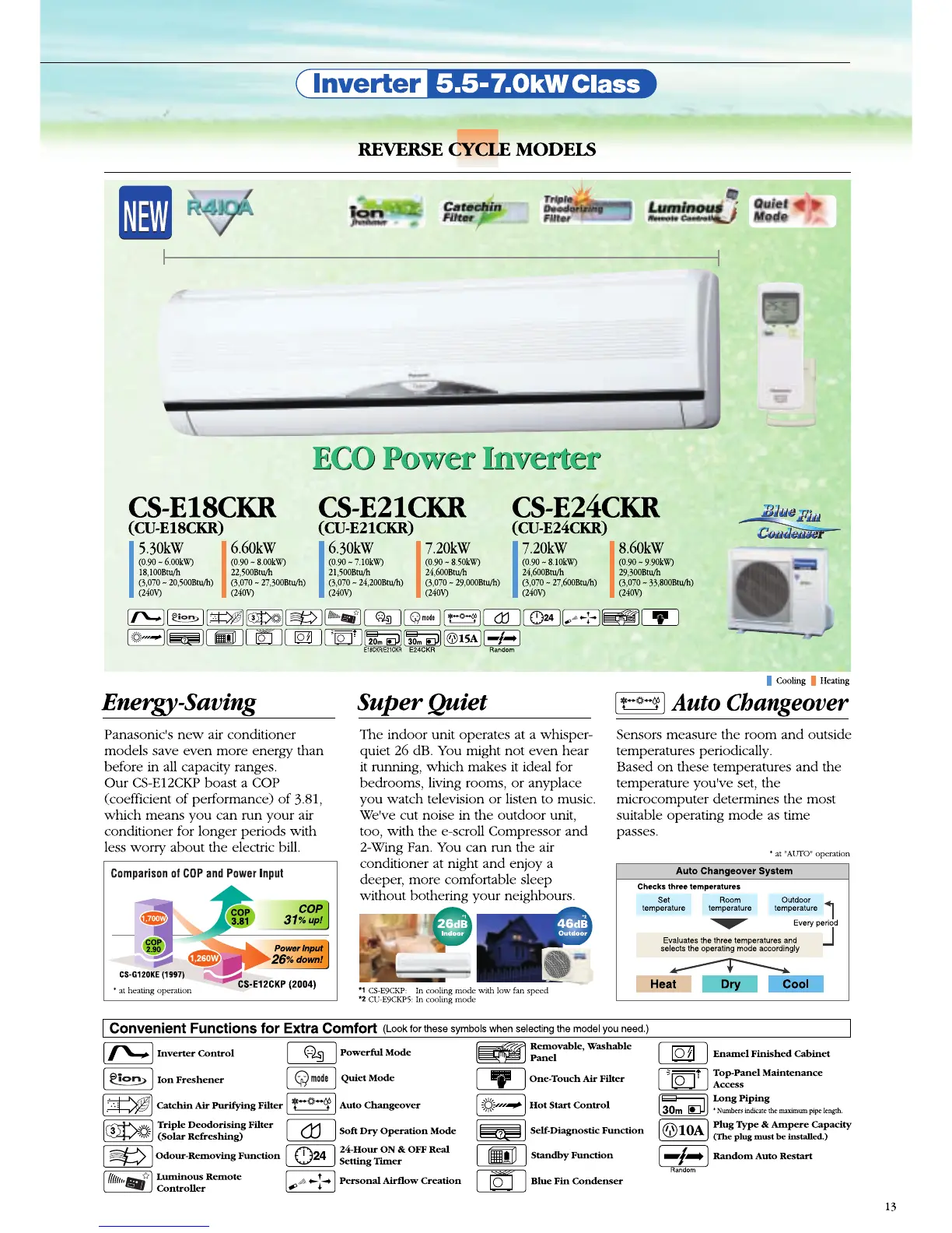 Panasonic 2005 - Single Split Inverter 5.5-7.0 kW Class; Energy-Saving and Super Quiet; Auto Changeover Function