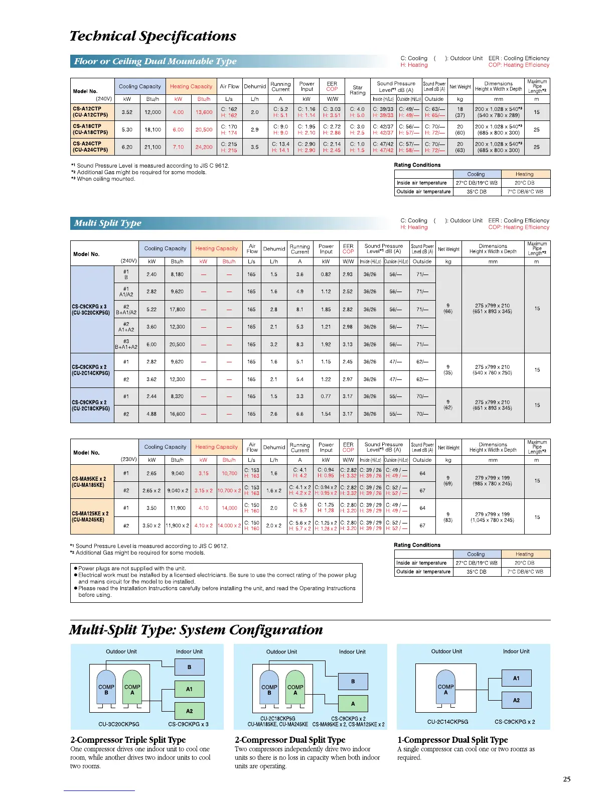 Panasonic 2005 - Technical Specifications: Floor;Ceiling Dual Mountable; Technical Specifications: Multi Split Type
