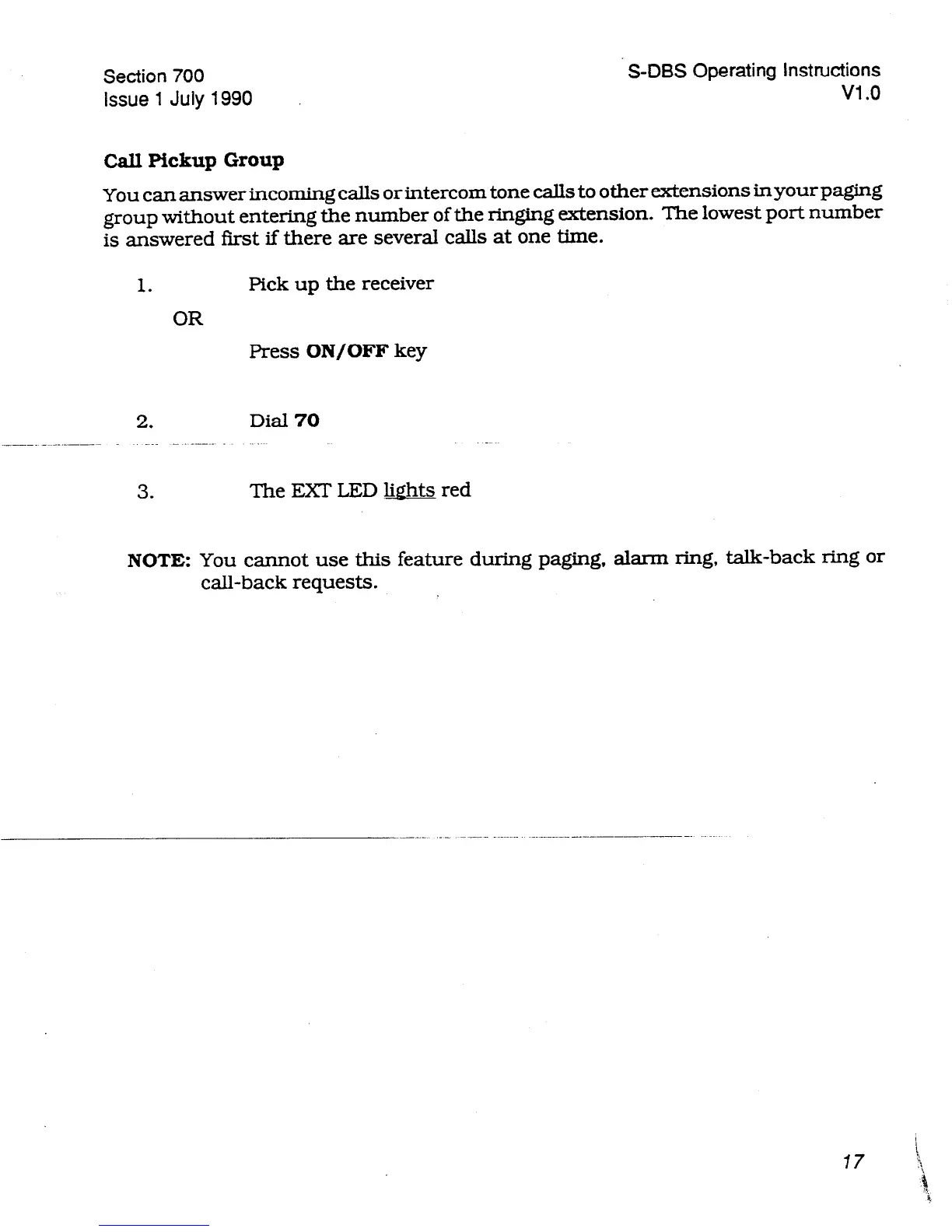 group without entering the number of the ringing extension. The lowest port number