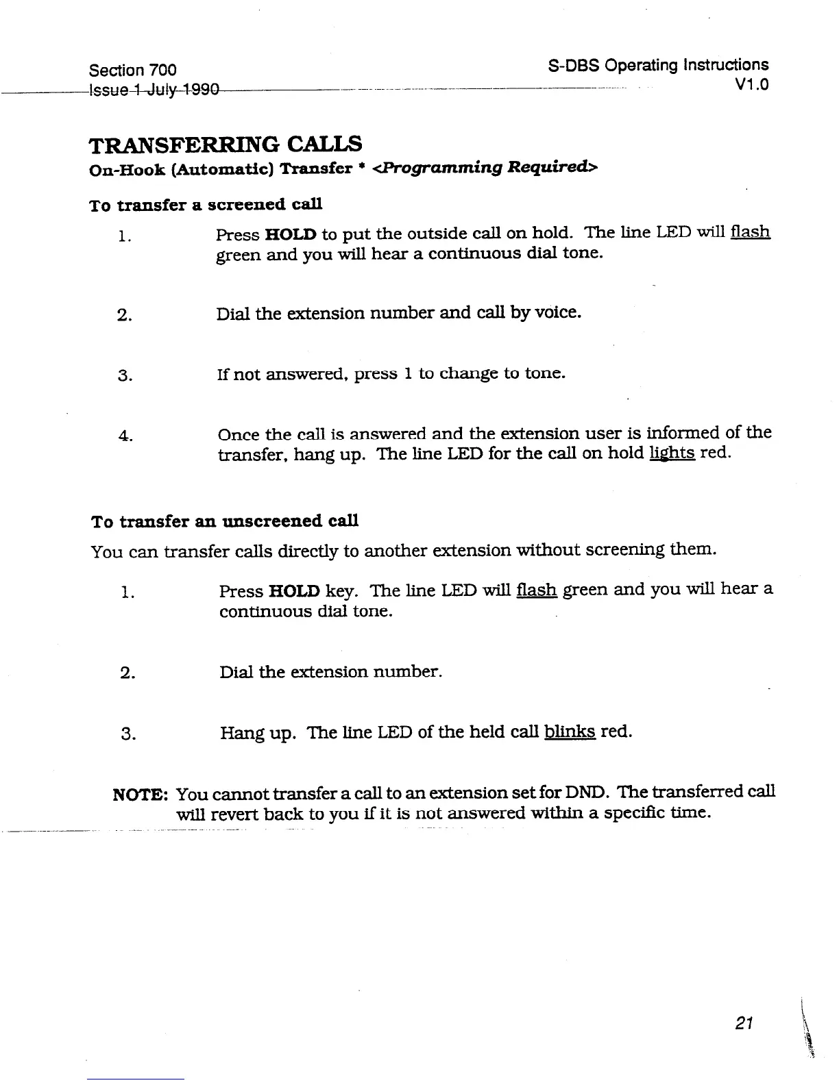 On-Hook (Automatic) Transfer * <Programming Required>