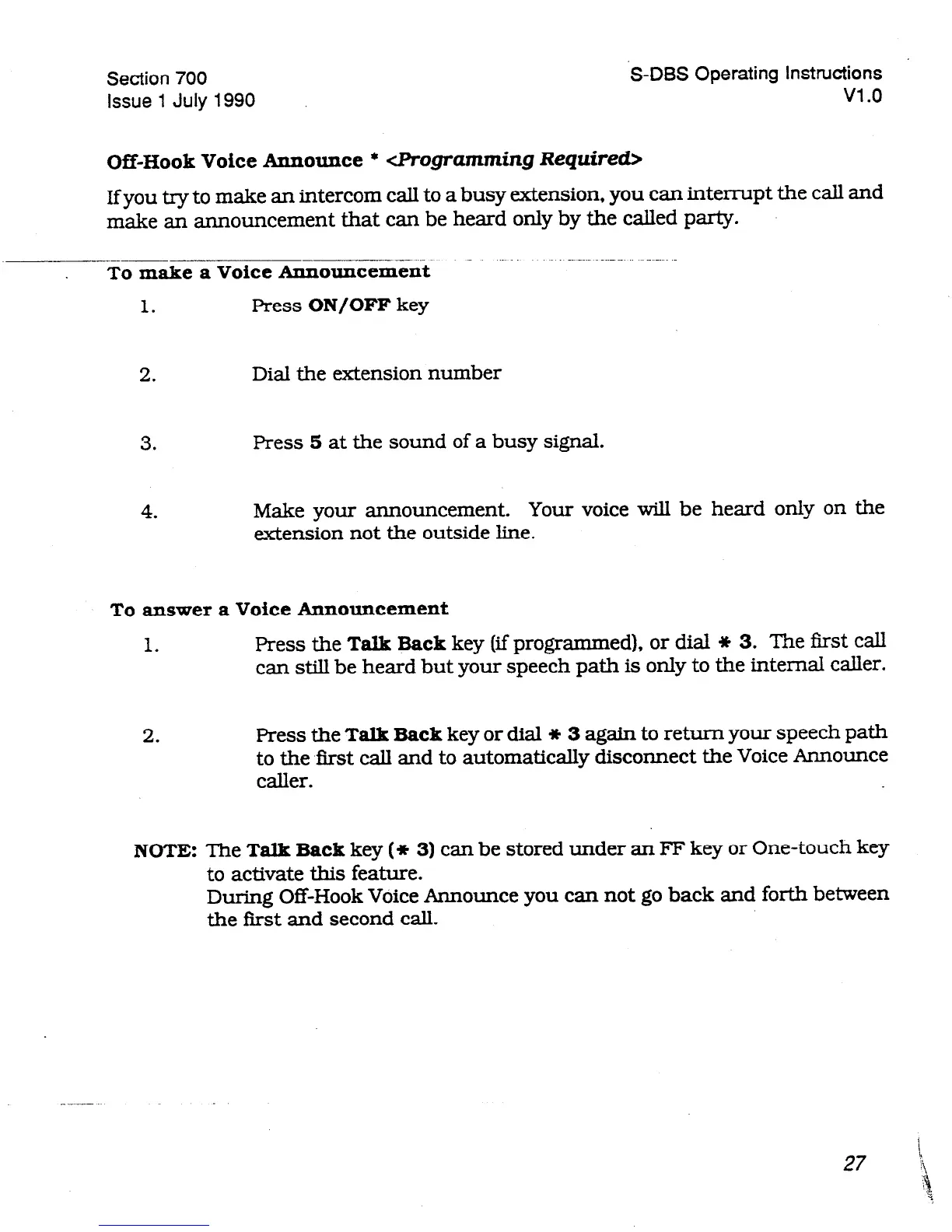 Off-Hook Voice Announce