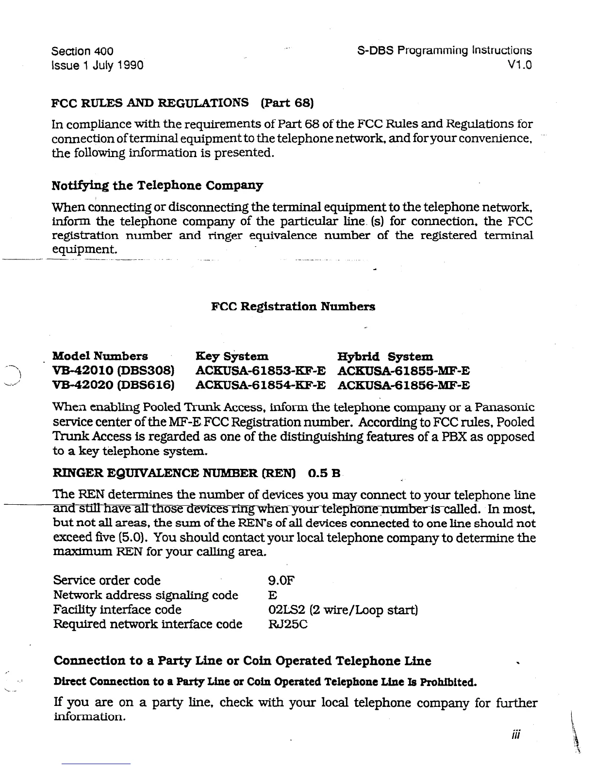 inform the telephone company of the particular line. (s) for connection. the FCC