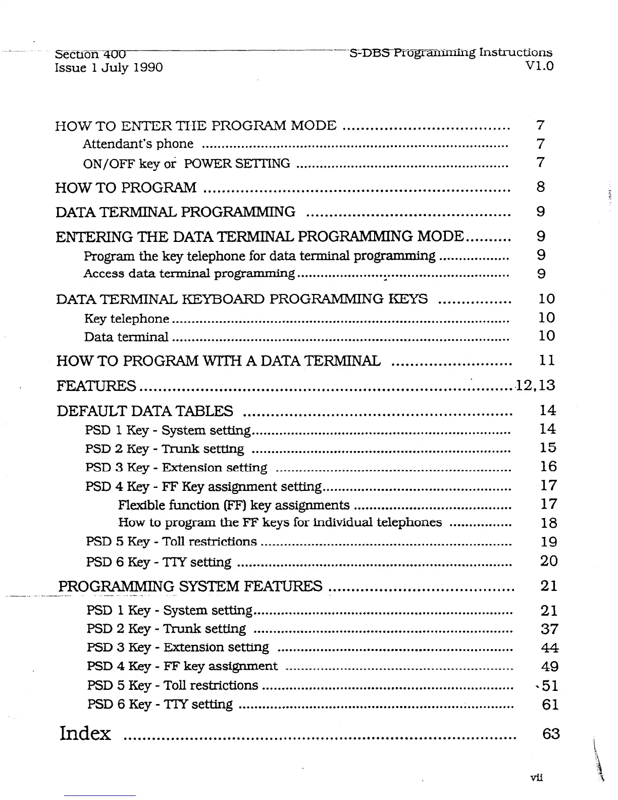program the key telephone for data terminal programming