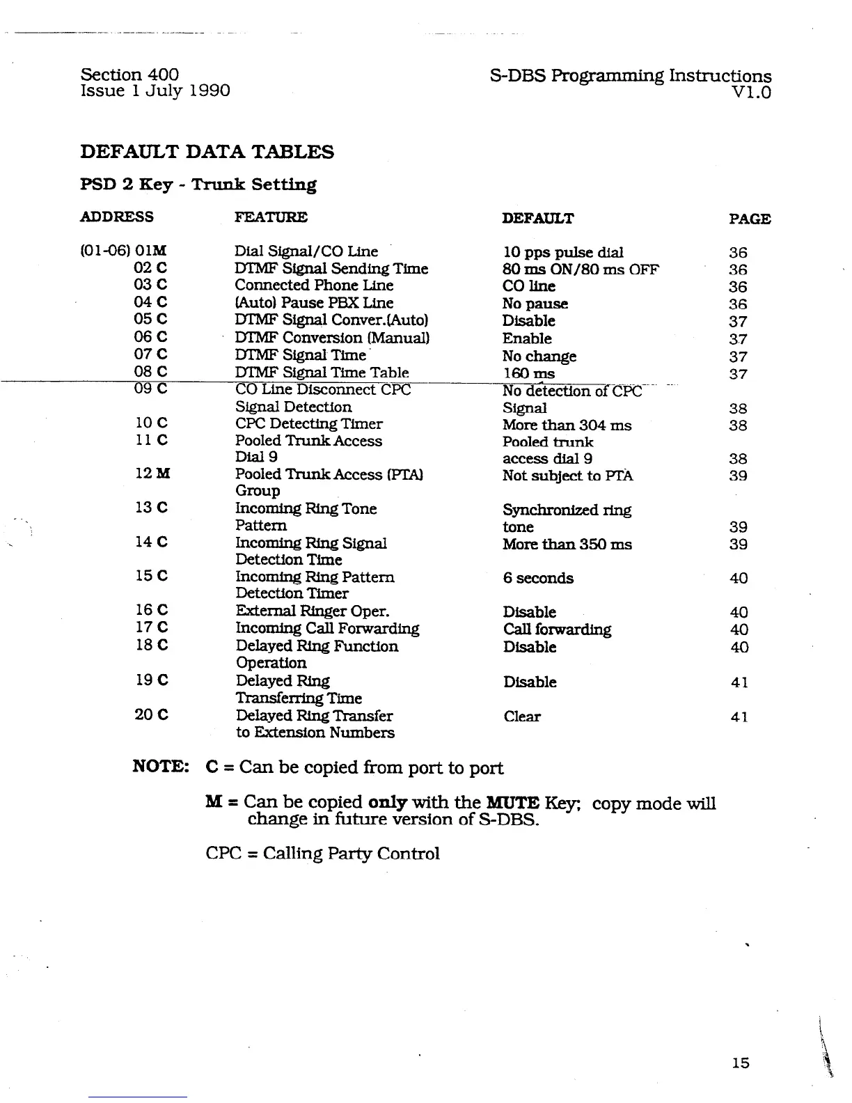 M = Can be copied only with the MUTE Key;