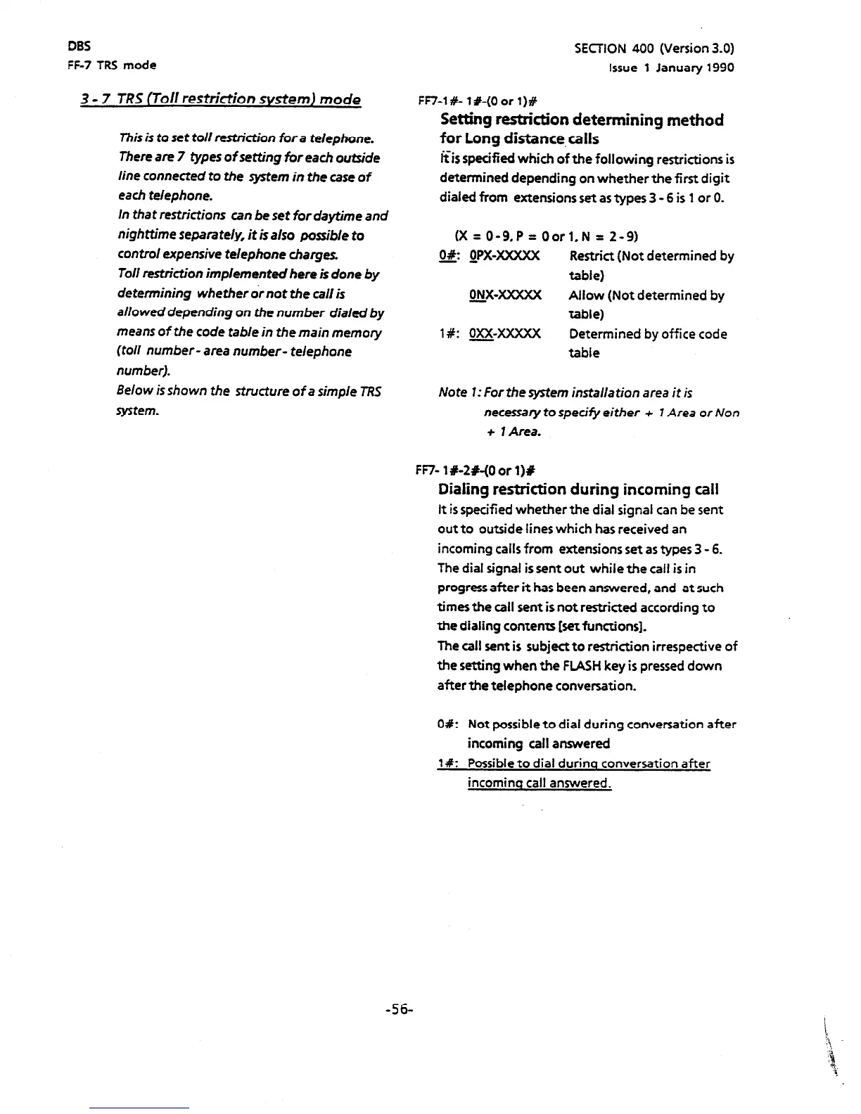 3 - 7 TRS (Toll restrictian svstem)