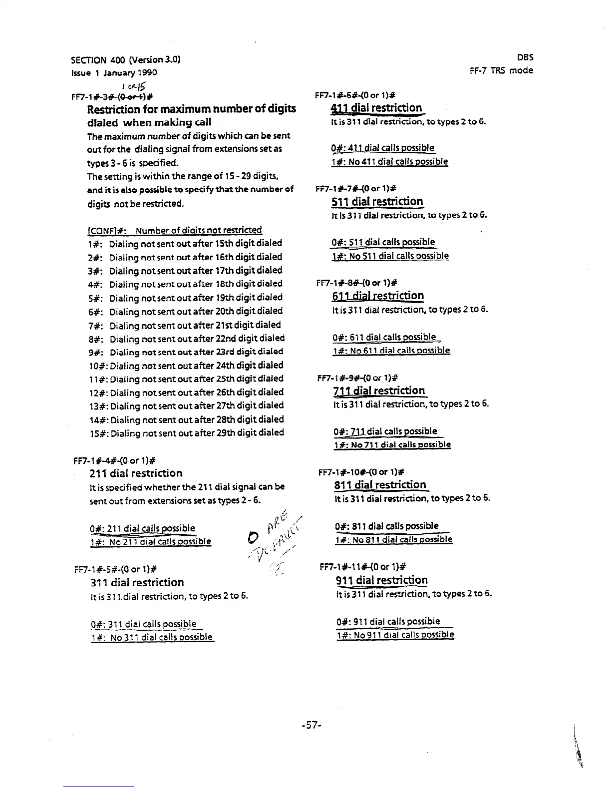 It is 311 dial restriction, to types 2 to 6.