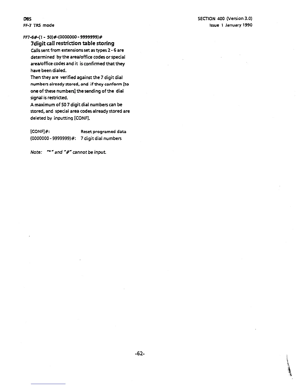 (0000000 - 999999918: 7 digit dial numbers