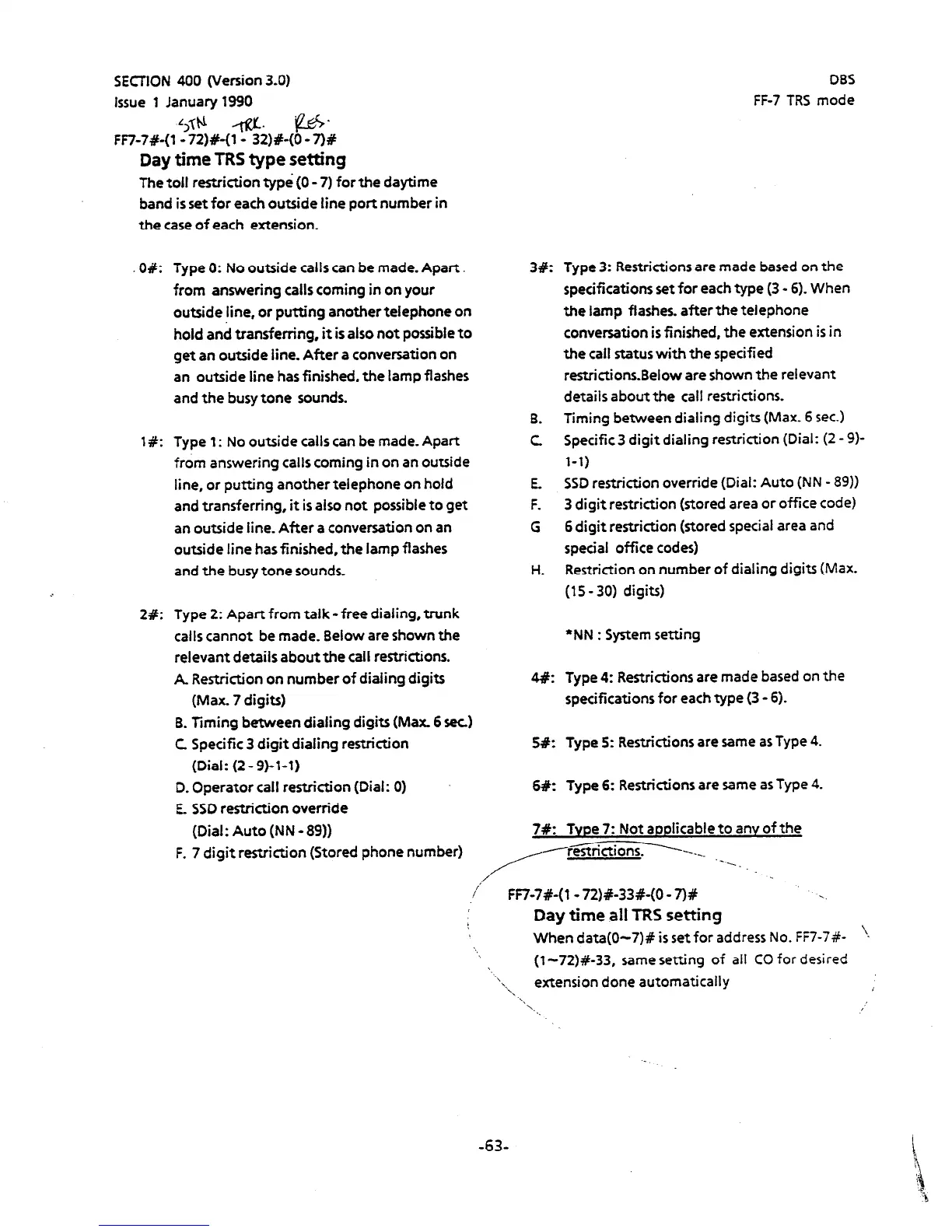 C Specific 3 digit dialing restriction (Dial: (2 - 9)-