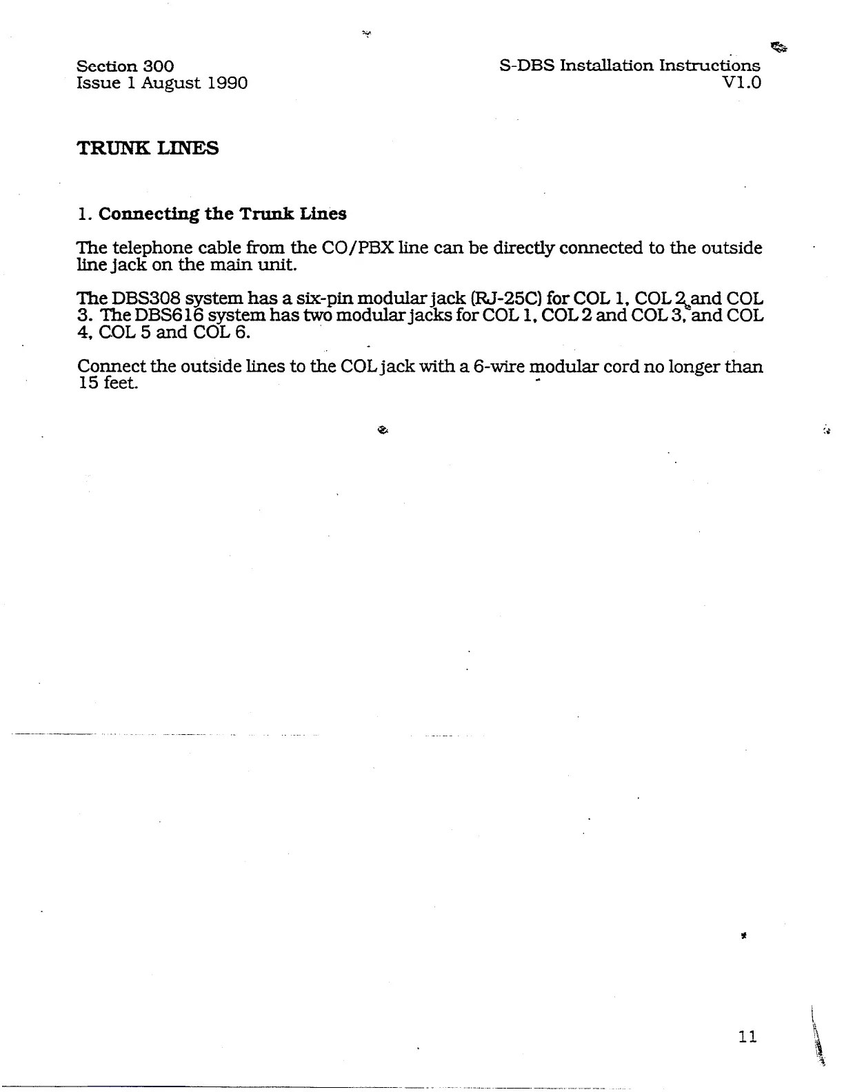 3. The DBS616 system has two modular jacks for COL 1, COL 2 and COL 3, and COL