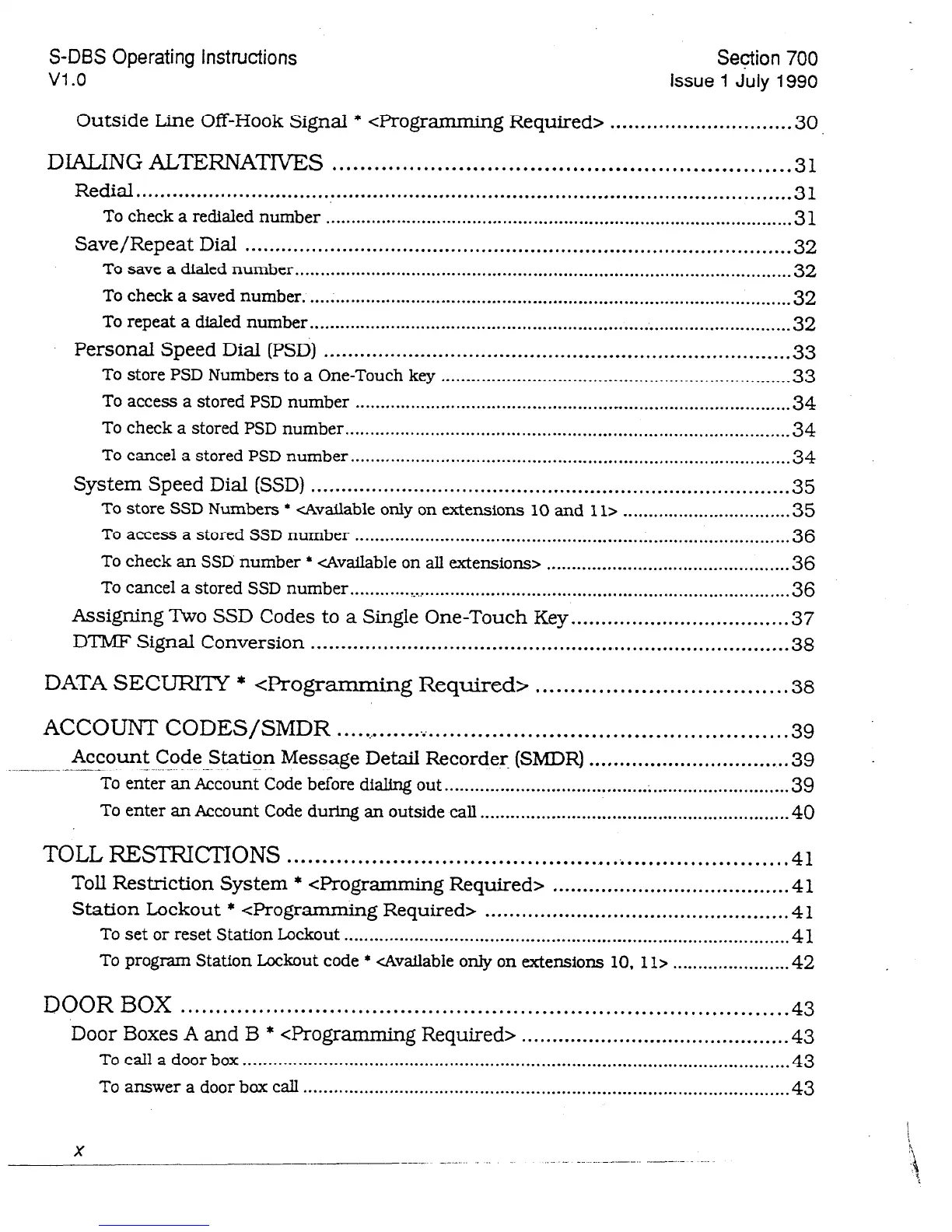 Outside Line Off-Hook Signal * &rogramming Required>
