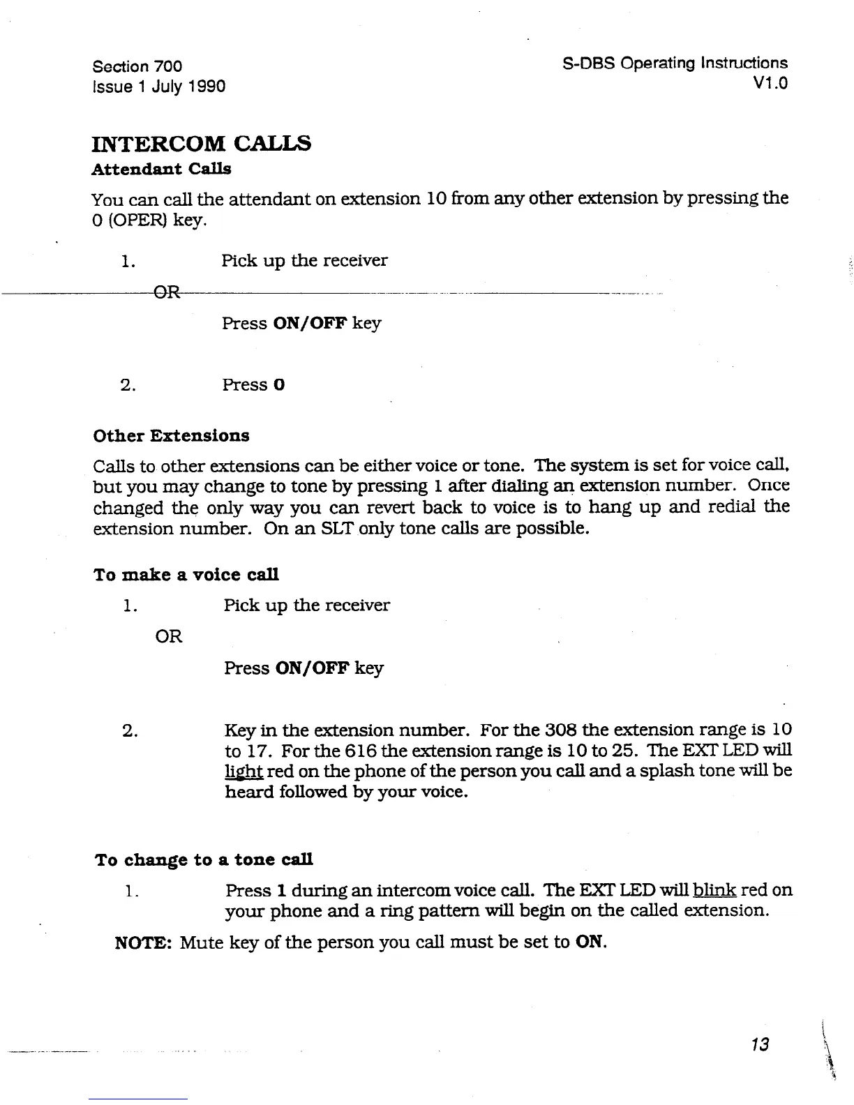 but you may change to tone by pressing 1 after dialing an extension number. Once
