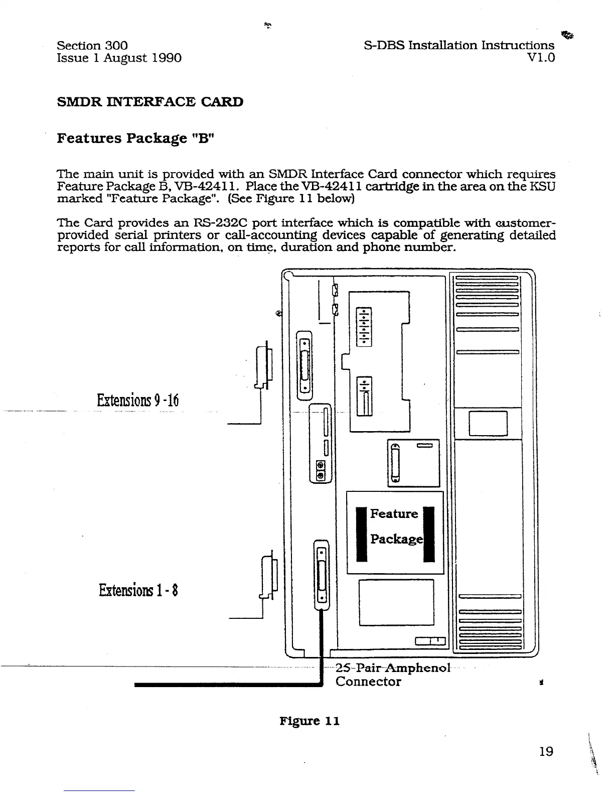 The main unit is provided with an SMDR Interface Card connector which requires