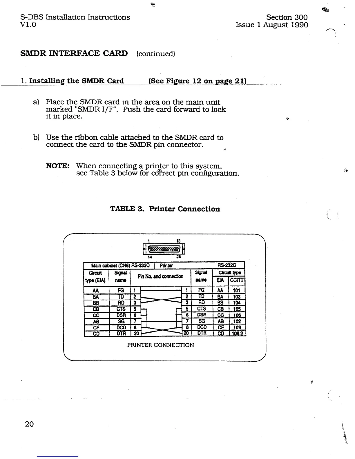 SMDR INTERFACE CARD (continued)