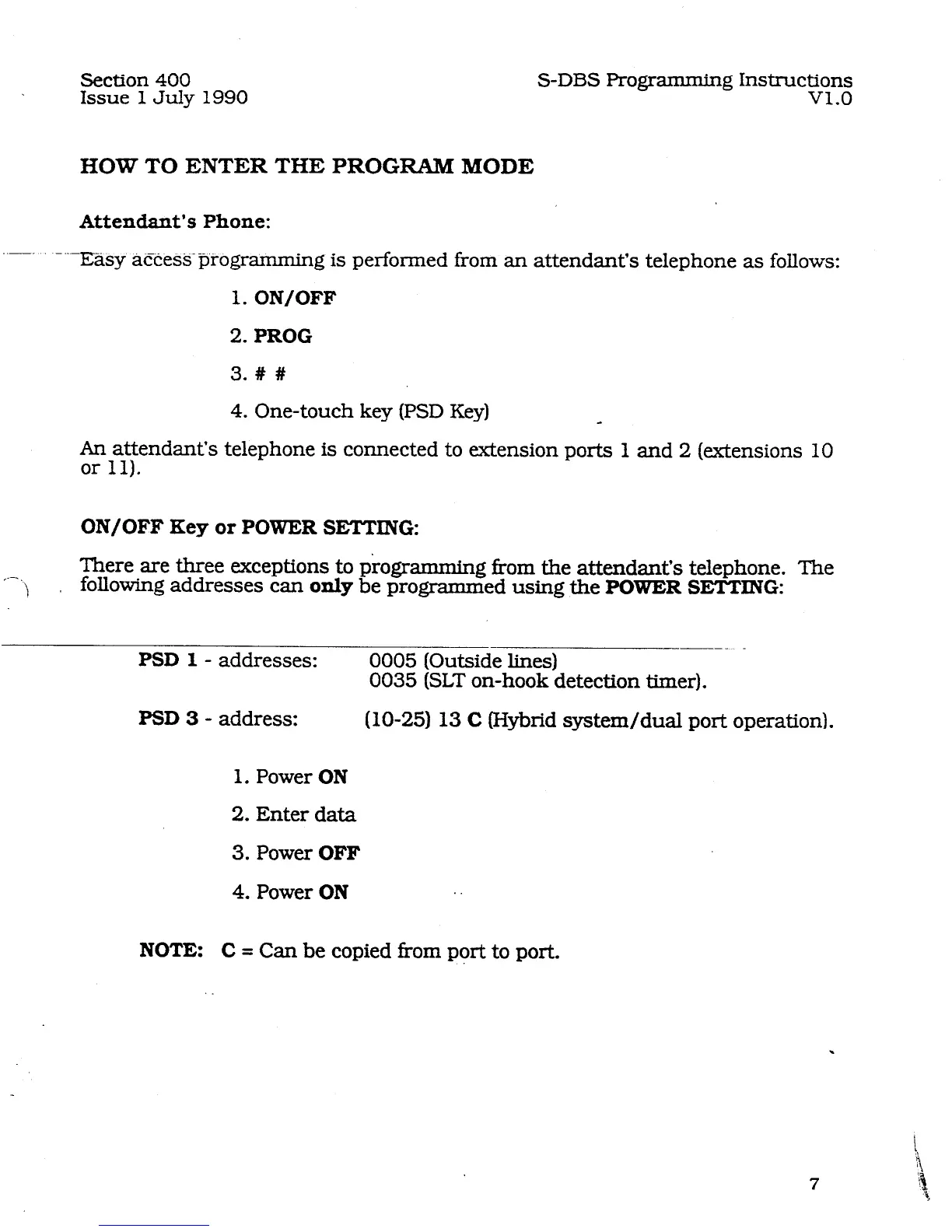 There are three exceptions to programming from the attendant’s telephone. The