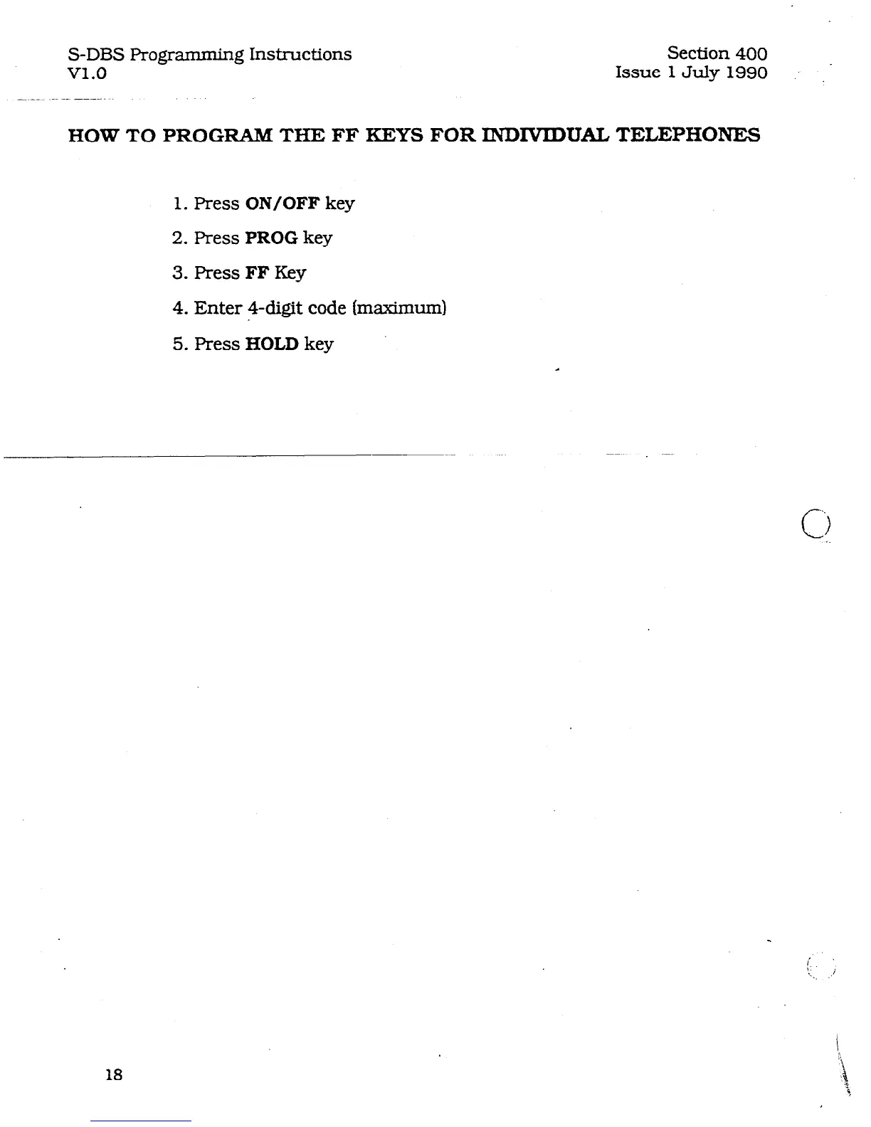 HOW TO PROGRAM THE FF KEYS FOR INDIVIDUAL TELEPHONES