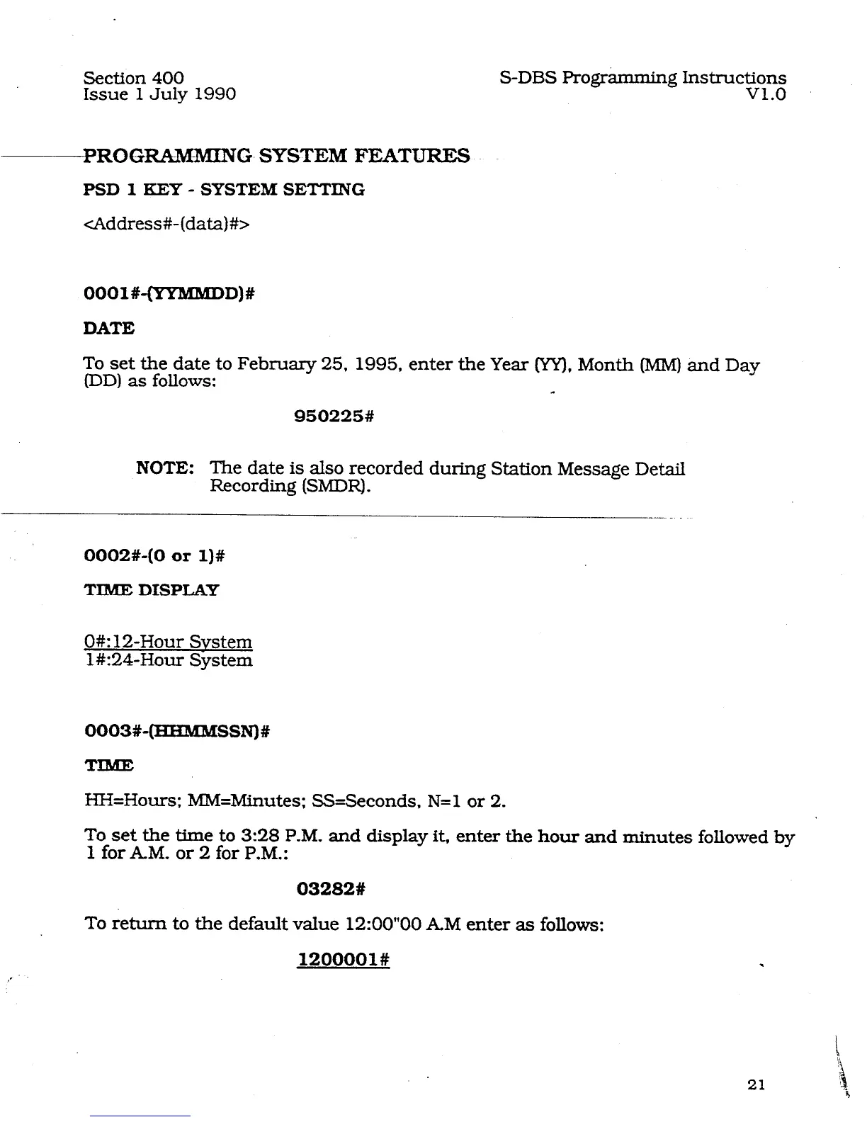 HH=Hours; MM=Minutes; SS=Seconds, N=l or 2.
