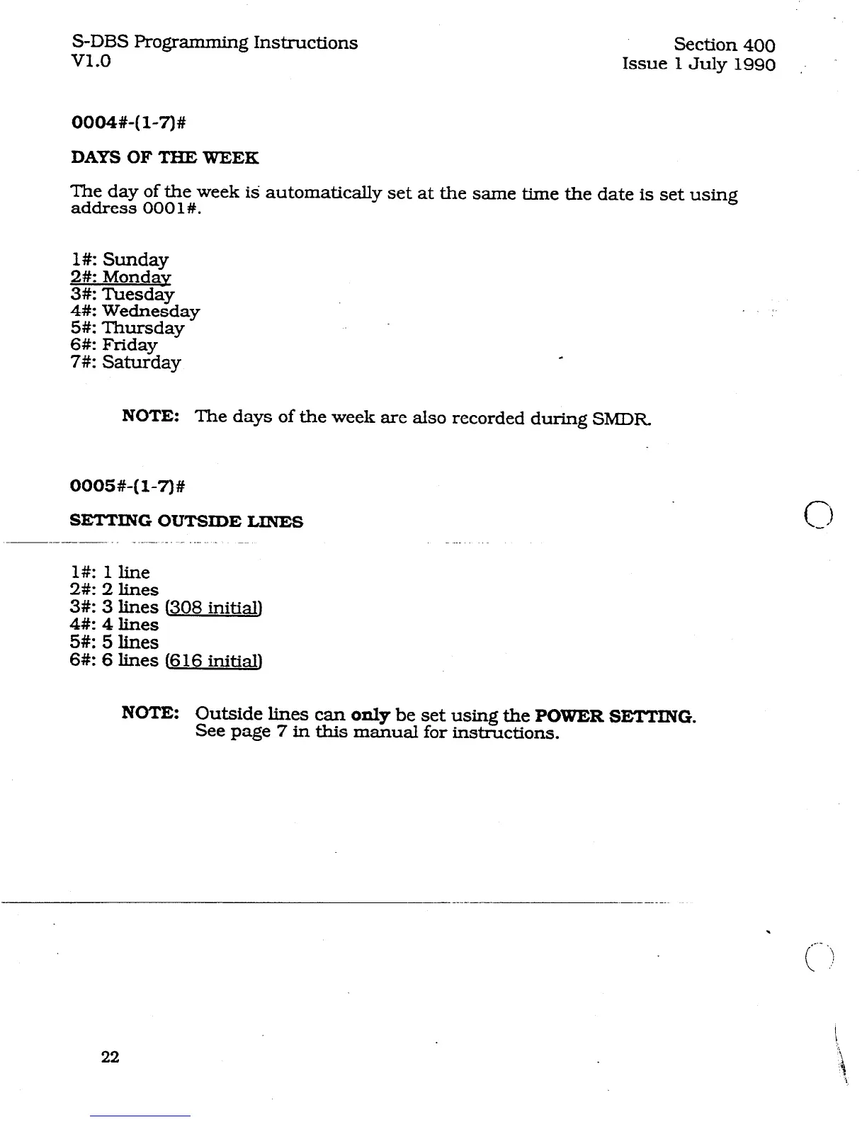 NOTE: Outside lines can only be set using the POWER SETTING.