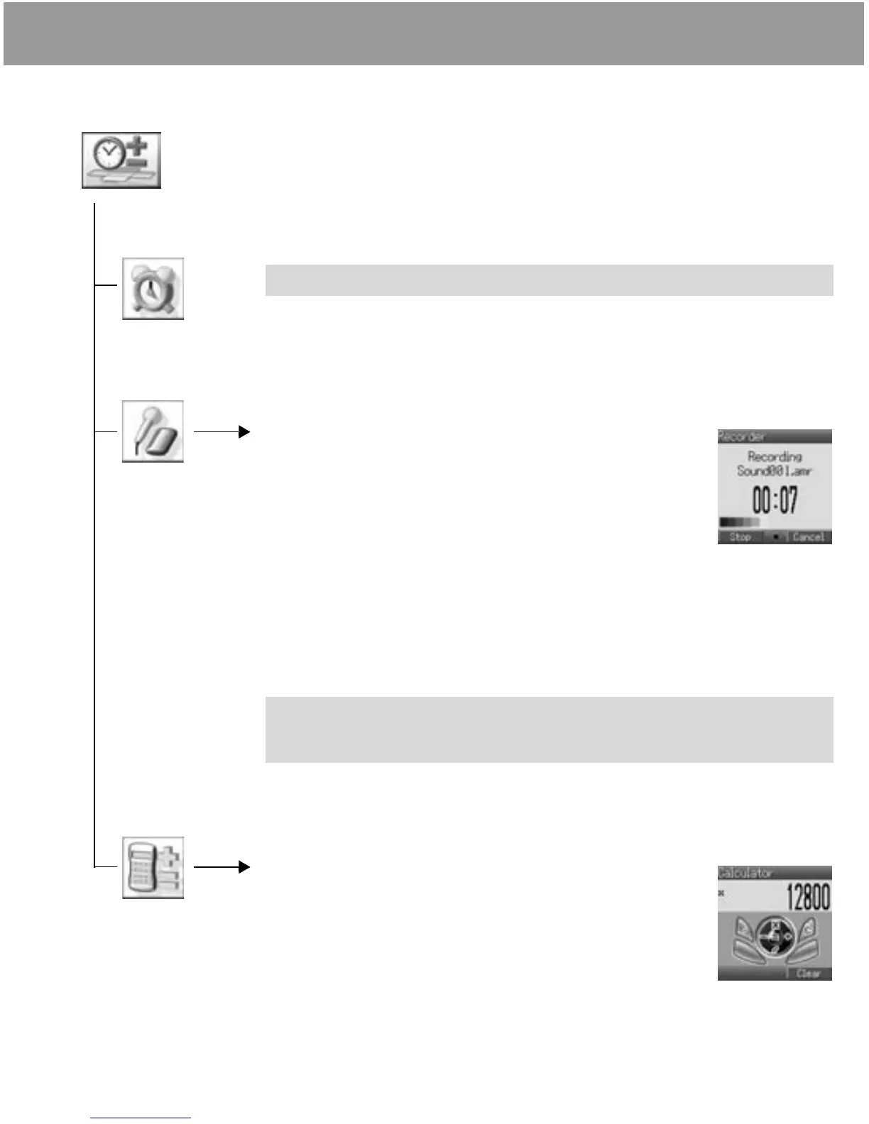 NOTE The alarm goes off at the time you set even if the phone is off.