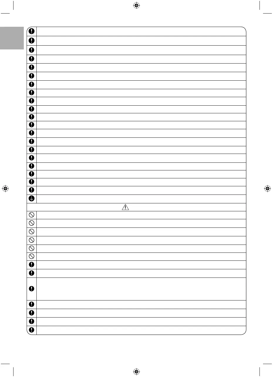 Only use the supplied or specifi ed installation parts, else, it may causes unit vibrate loose, water leakage, electrical shock or fi re.