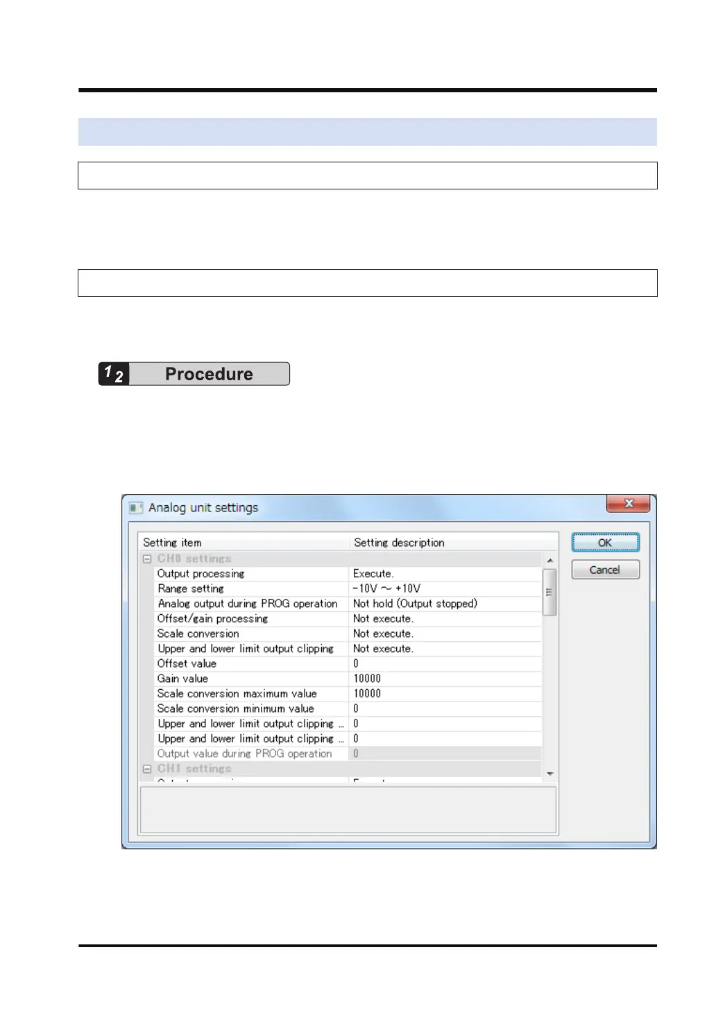Use the FPWIN GR7 configuration menu to make analog output unit settings, such as output