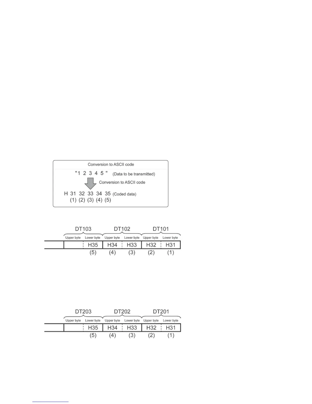 starting from the next register (DT101), in two-byte units consisting of the upper and the lower byte.