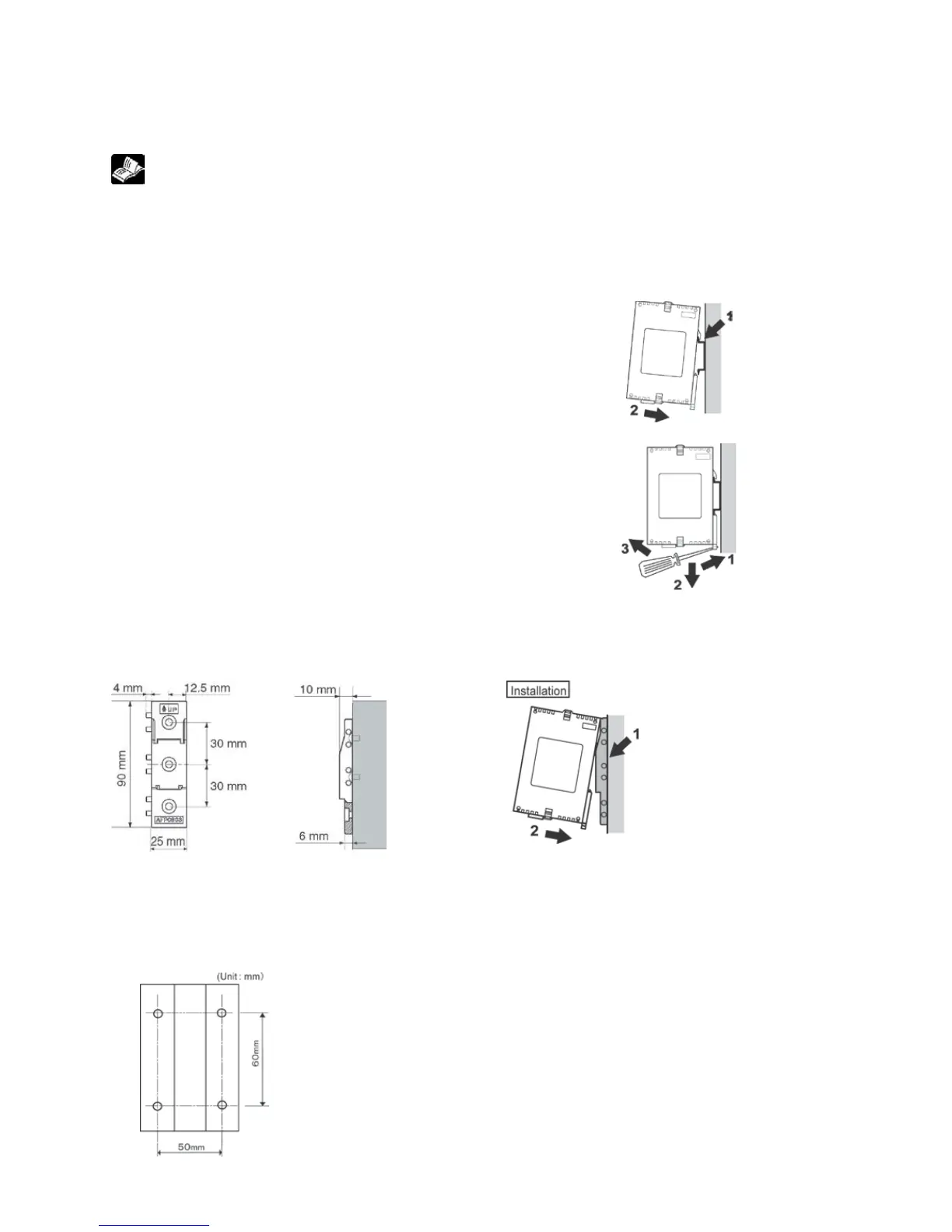 (1) Fit the upper hook of the unit onto the DIN rail.