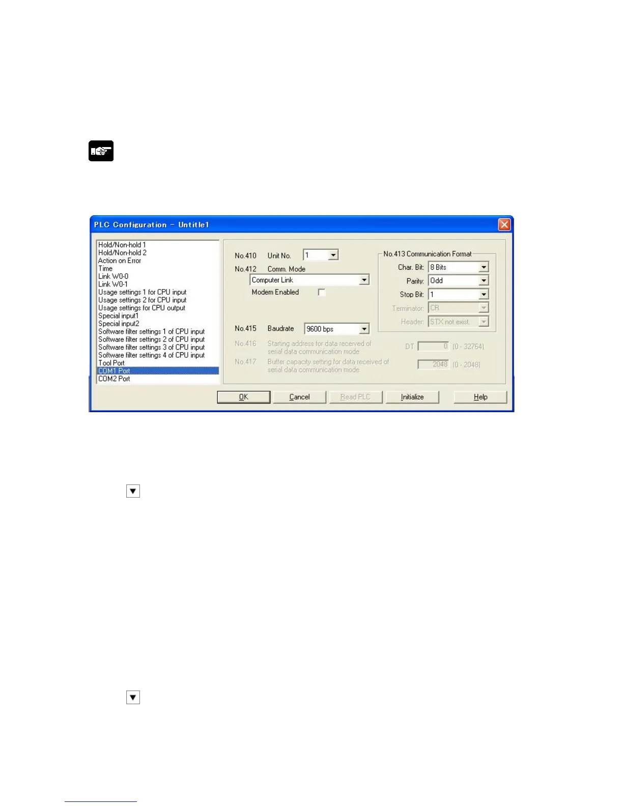 No. 413 (for COM1 port), No. 414 (for COM2 port) Communication Format setting