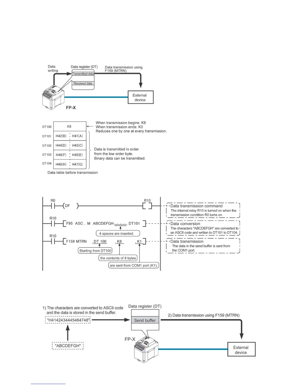 2) The data is sent from COM1 port using the F159 (MTRN) instruction.