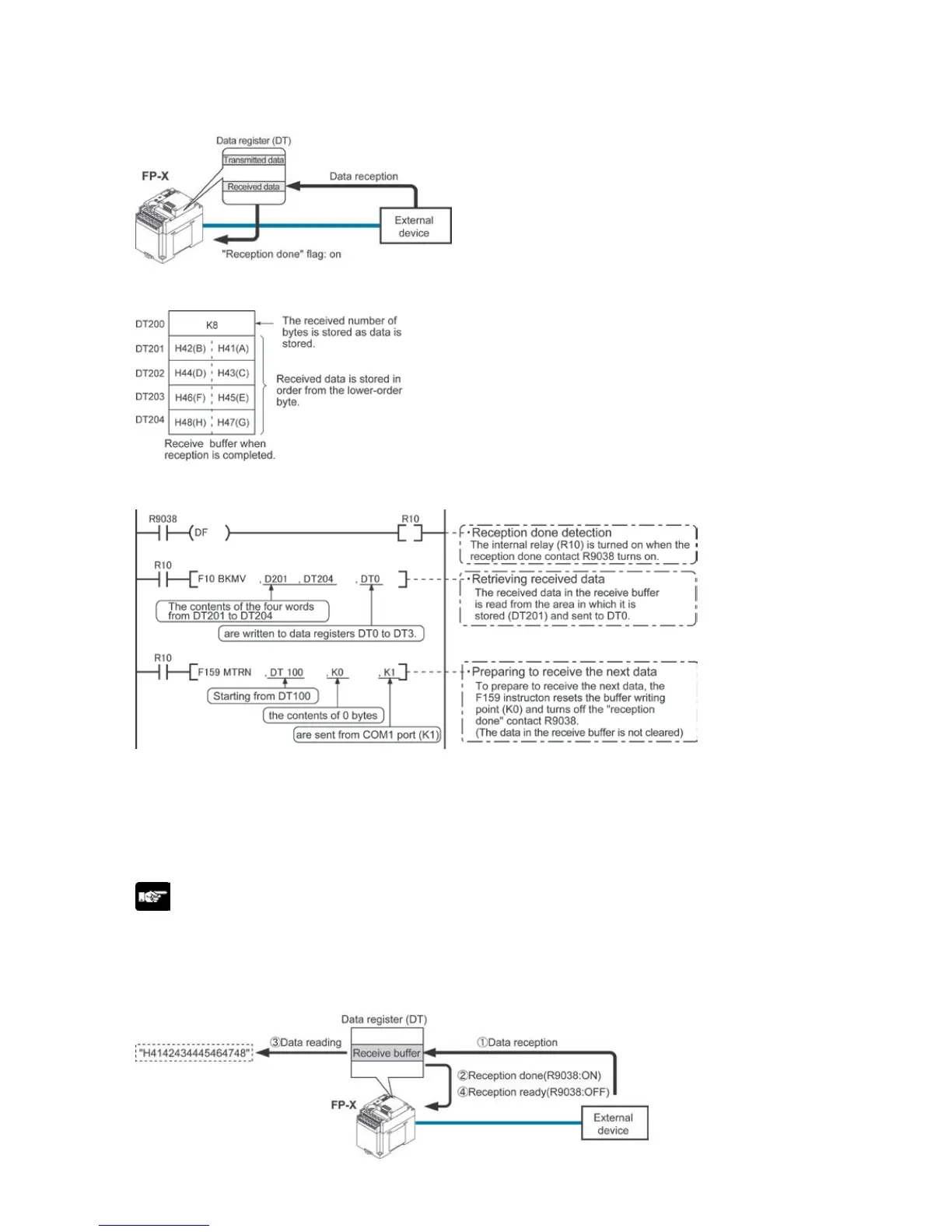 3) The received data is sent from the receive buffer to the area starting with data register DT0.