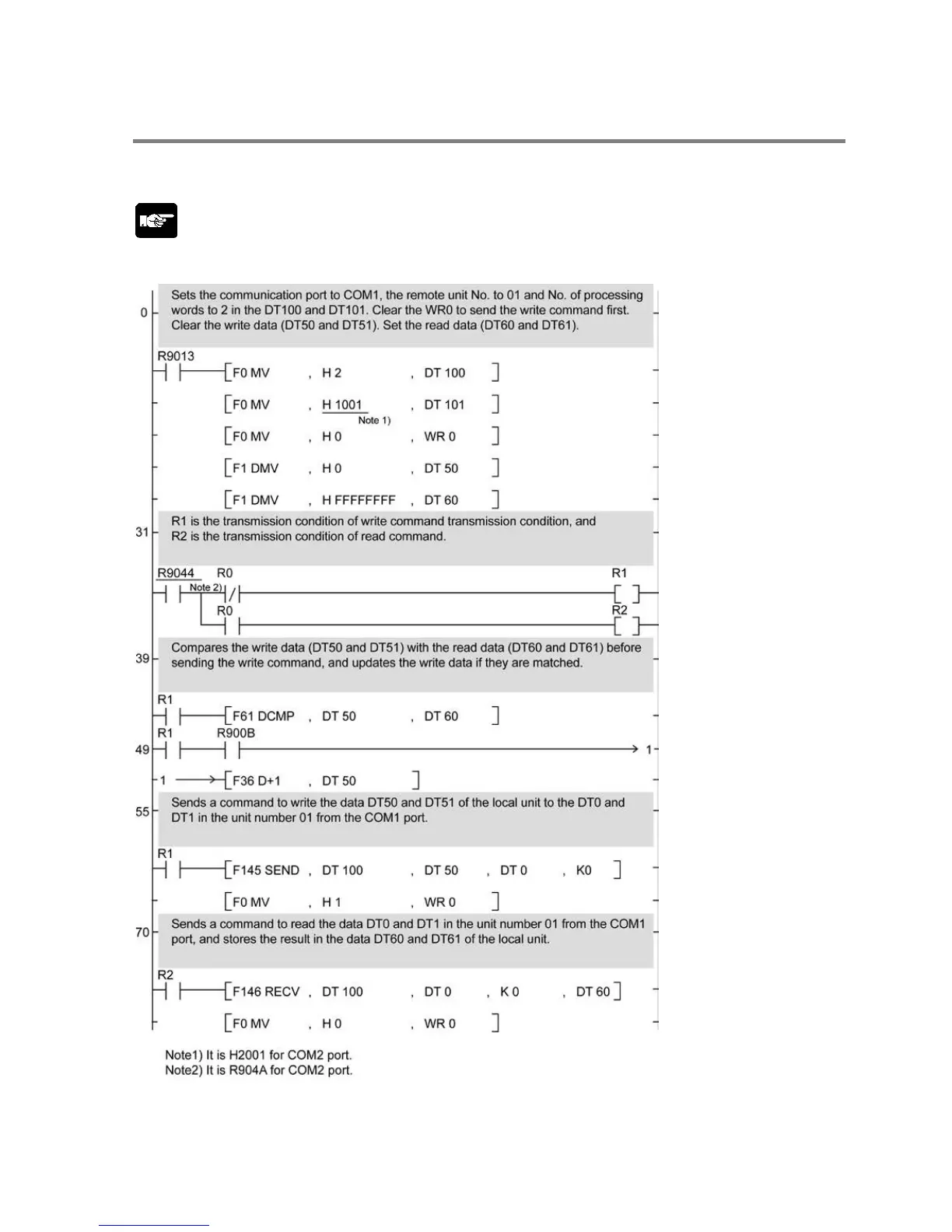 Use the F145 (SEND) Data sendor F146 (RECV) Data receive instruction to use the MEWTOCOL