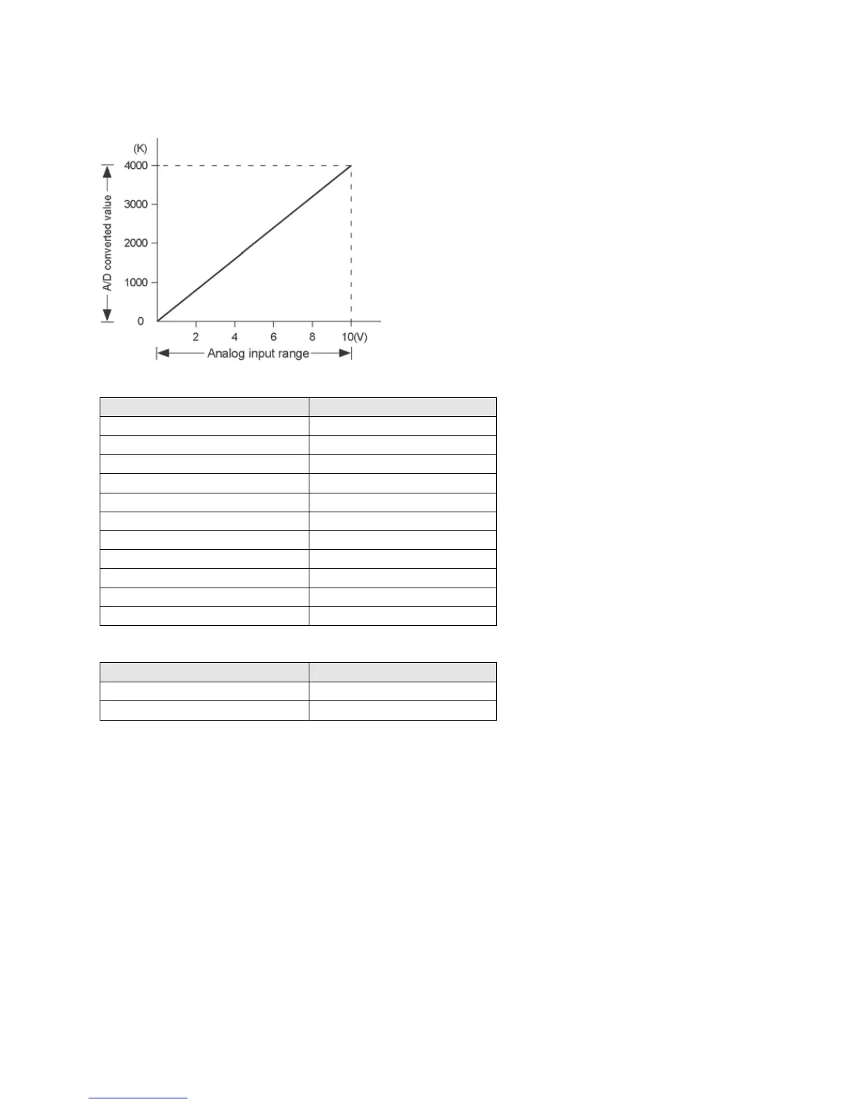 Table of A/D converted values