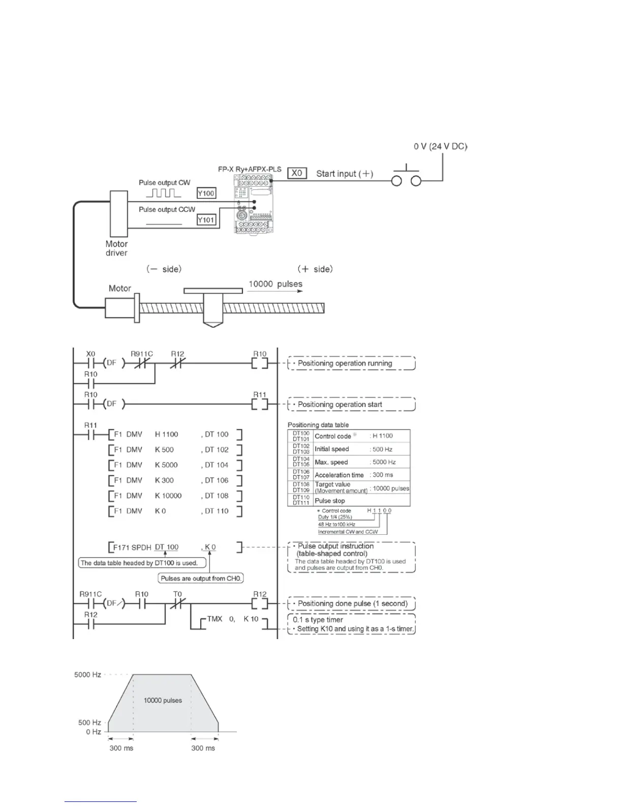 When X0 turns on, the pulse is output from CW output Y100 of the specified channel CH0.
