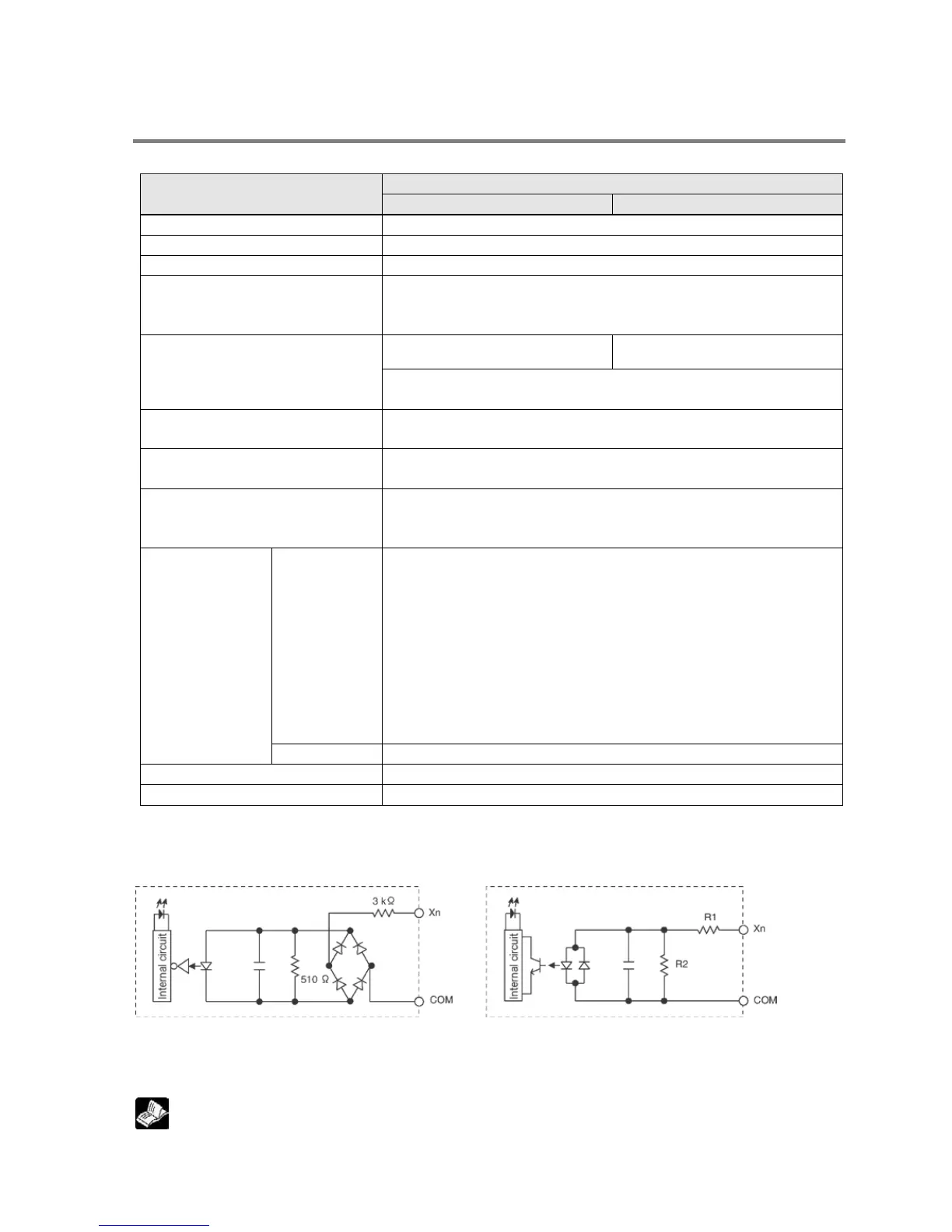 2.4V DC/1.3 mA (for control units X0 to X3)