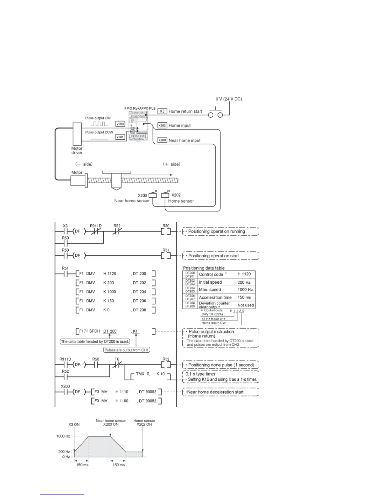 to home begins. When X200 turns on, deceleration begins, and when X202 turns on, home return is