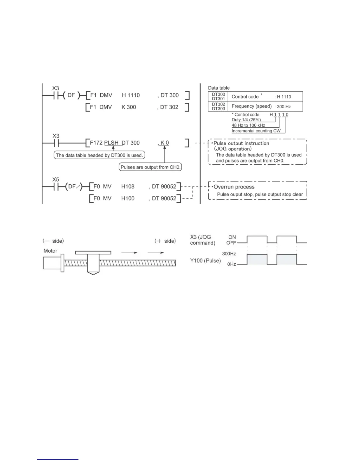While X3 is in the ON state, a pulse is output from the CW output Y100 of the specified channel CH0.