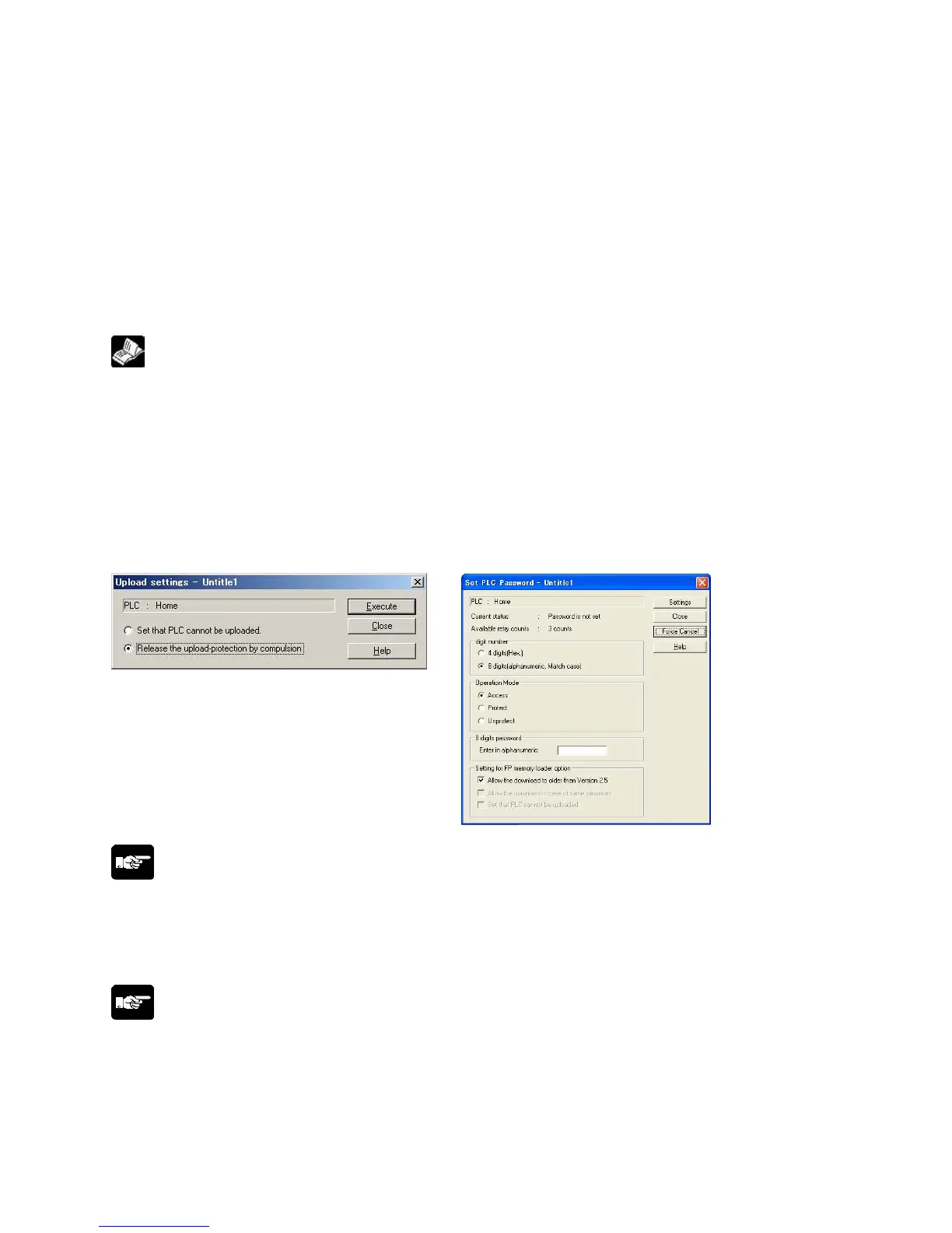 2. If “Force Cancel” is executed in the setting for PLC password, the setting for the upload protection will