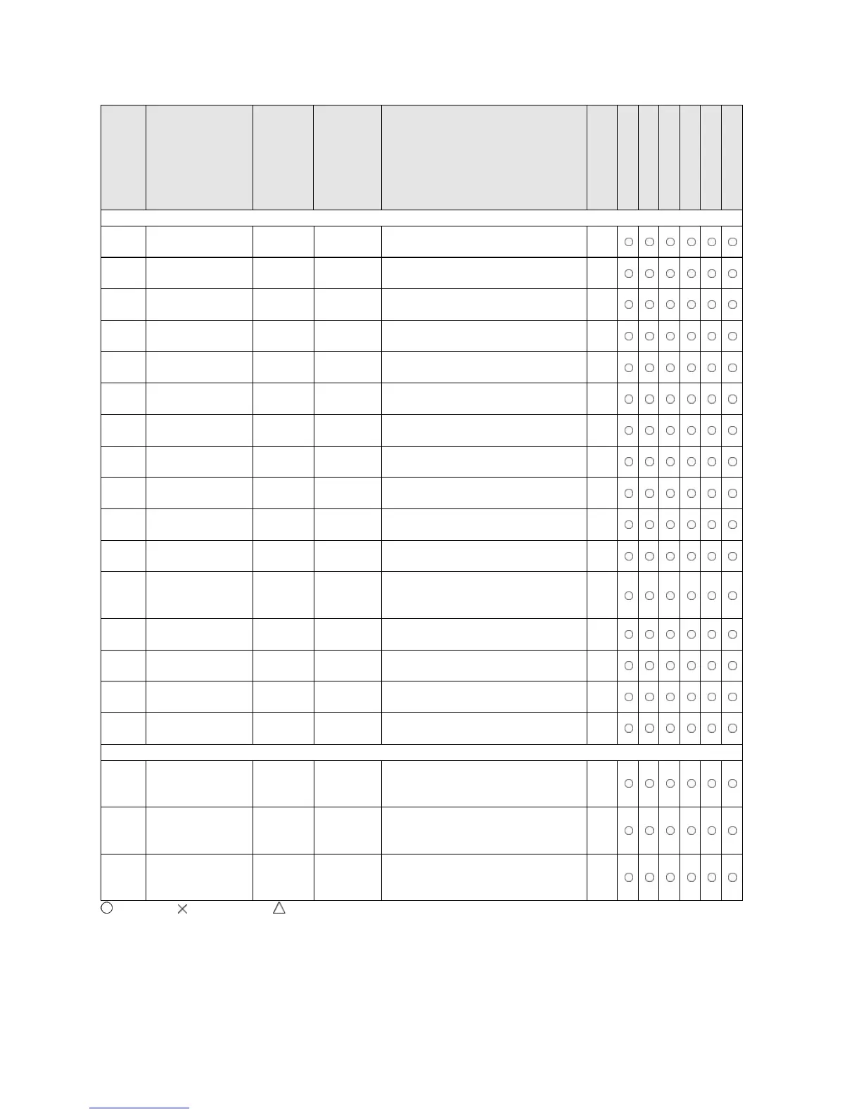 : Available, : Not available, : Not available partially