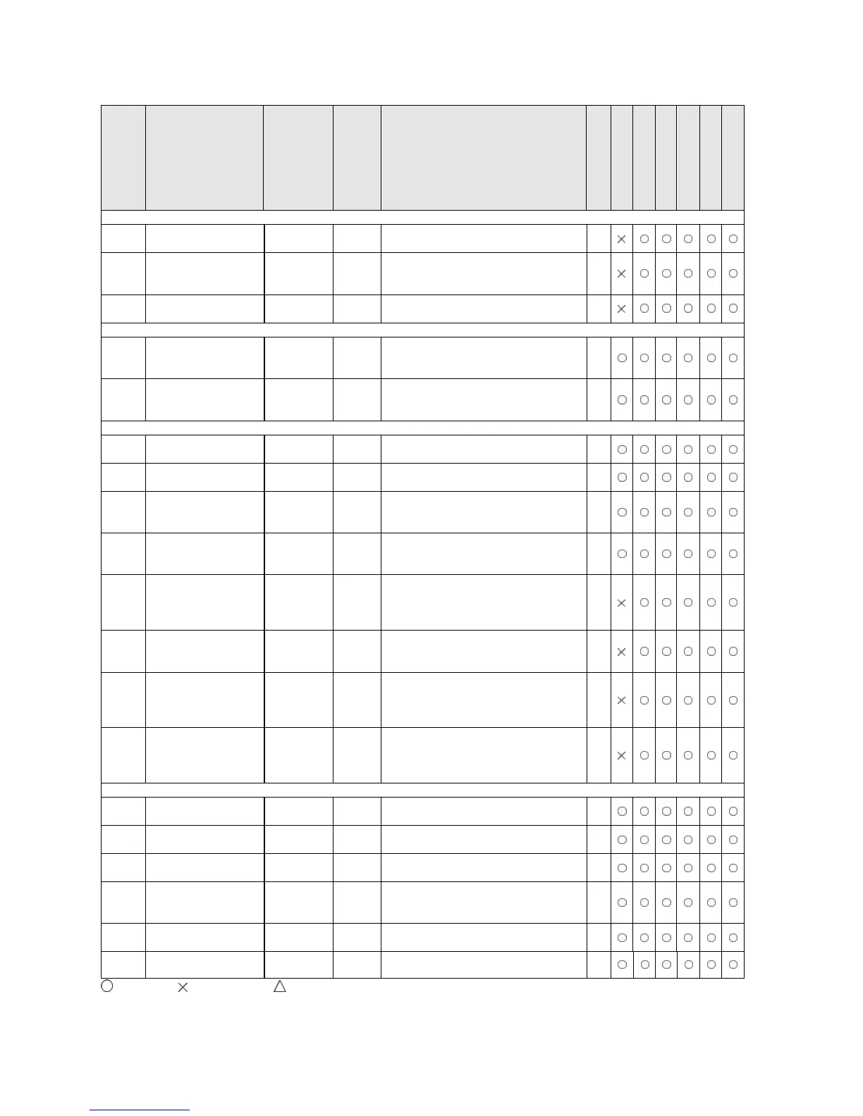 : Available, : Not available, : Not available partially