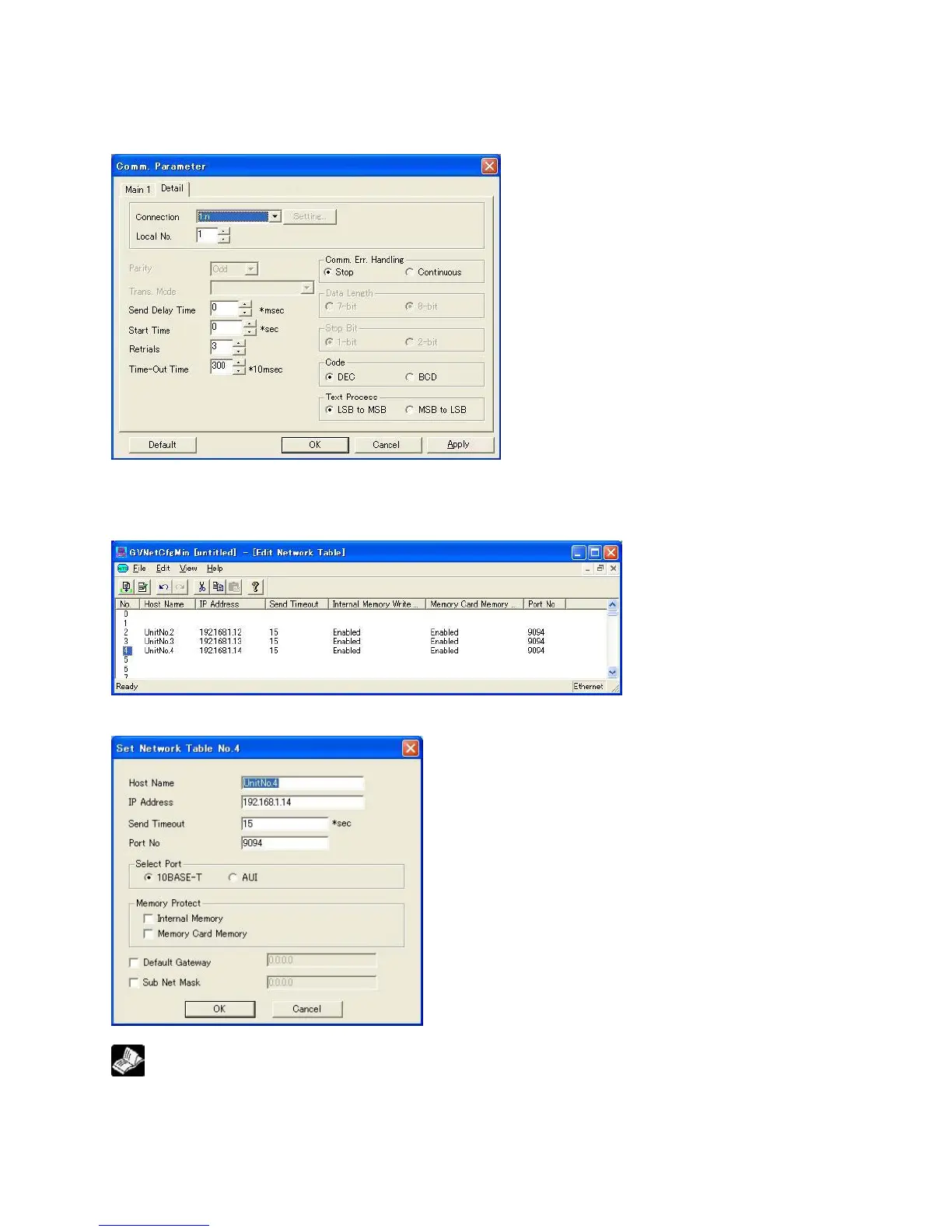 Select [Comm. Parameter] under [System Setting] in the menu bar, and select [Network Table Setting]