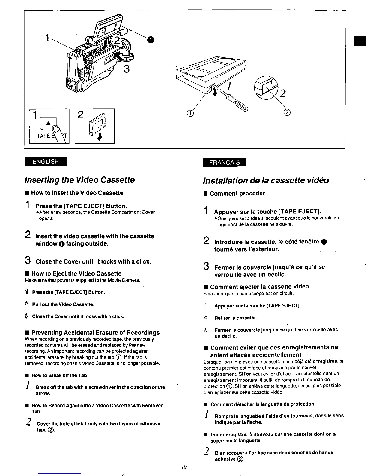 Panasonic AG-196UP - Inserting and Ejecting Video Cassettes
