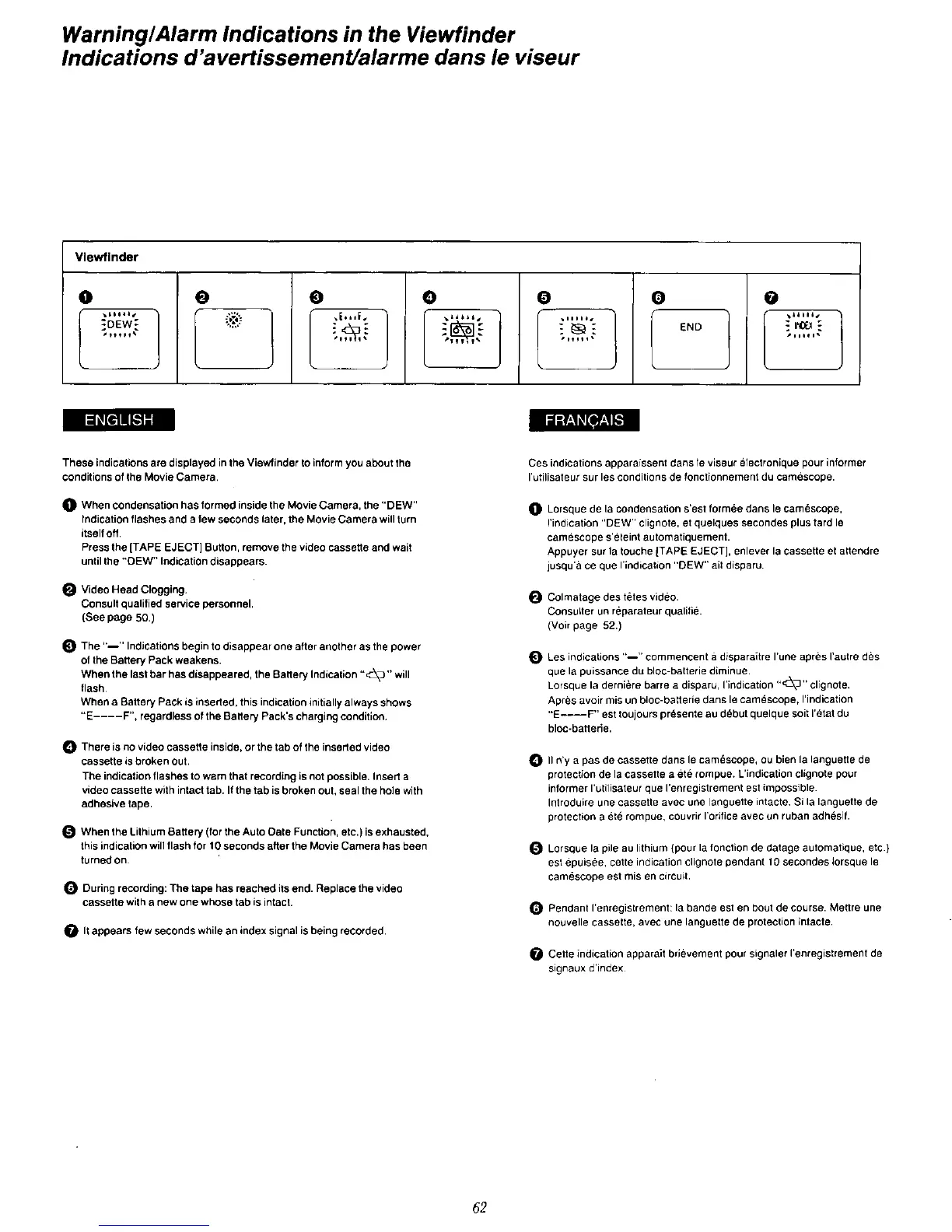 Panasonic AG-196UP - Warning and Alarm Indications