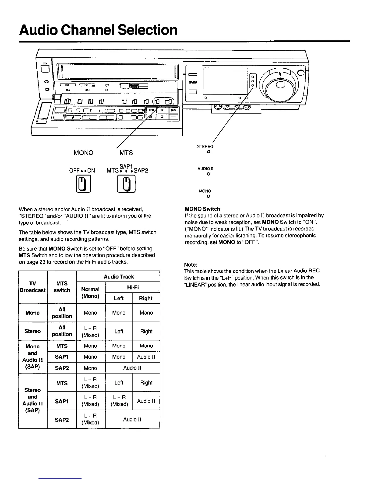 Panasonic AG-1980 - Audio Channel Selection