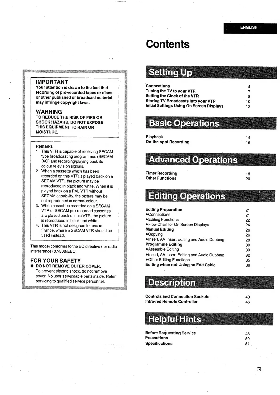 Panasonic AG-4700E - Table of Contents